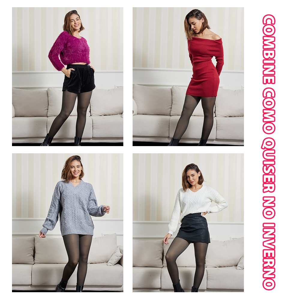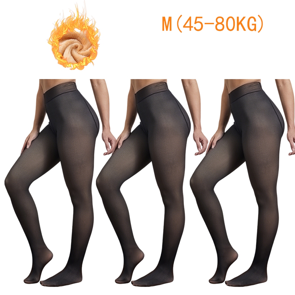 Kit 3 Meia Calça Térmica Translúcida Super Stretch Slim com Peluciada para Inverno,conjunto de três peças