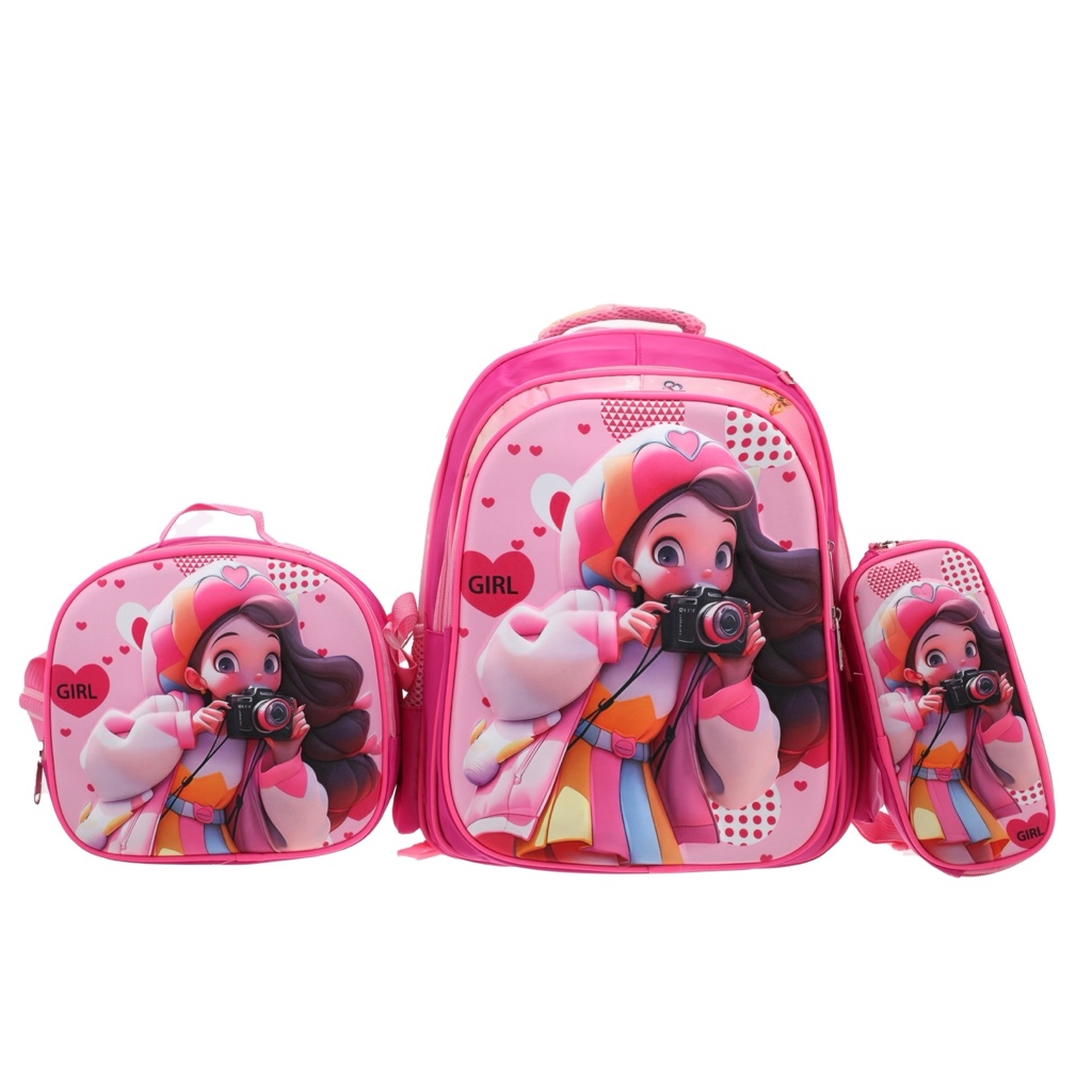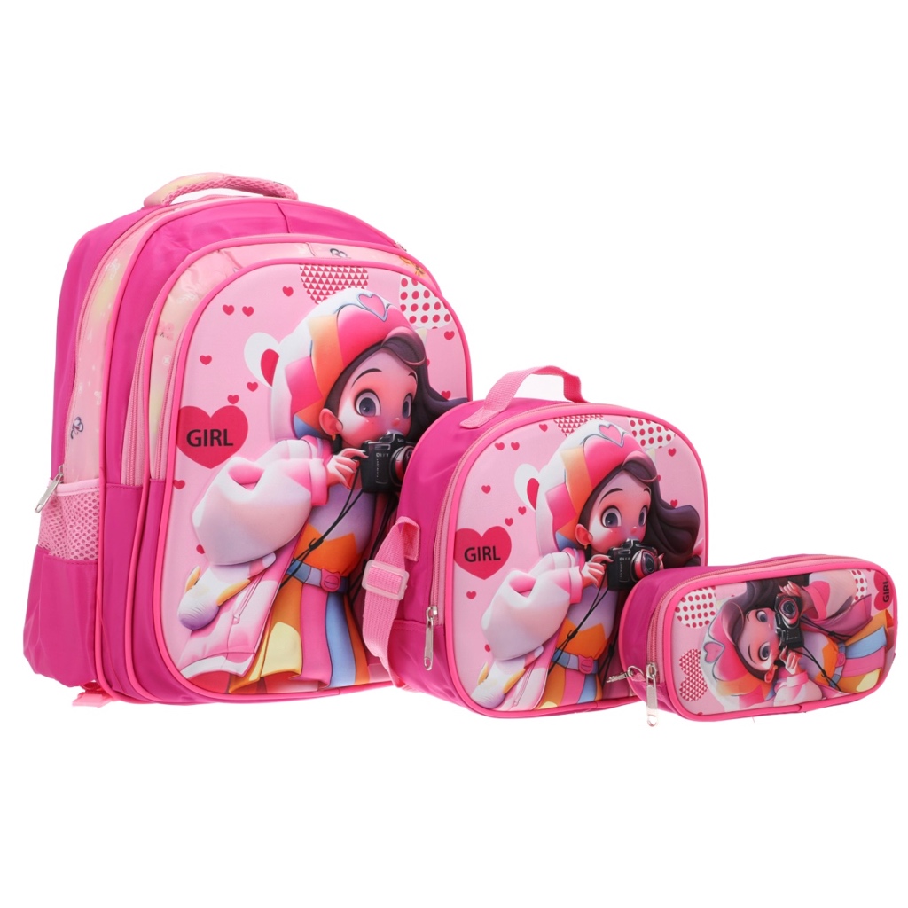 Kit 3 Mochila Bolsa Escolar Juvenil Feminina De Costas Menina com Lancheira Estojo