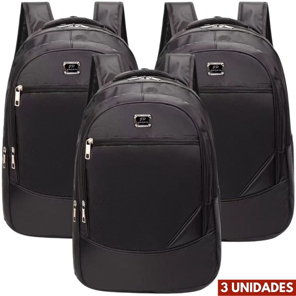 Kit 3 Mochilas Mala Reforçada Notebook Impermeável Escolar Trabalho Resistente