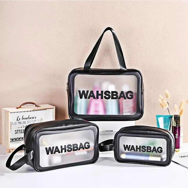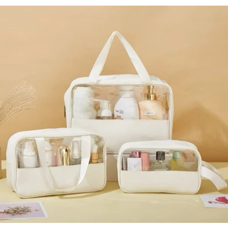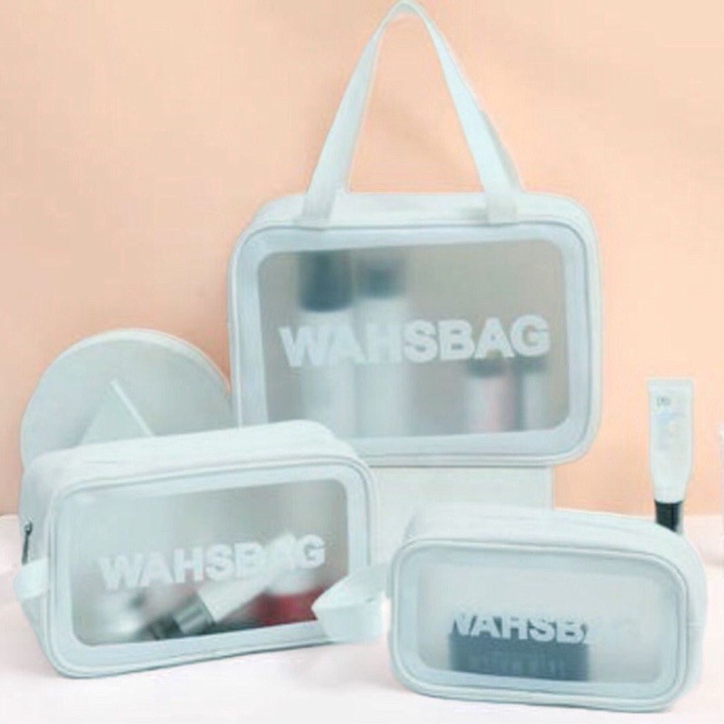 Kit 3 Necessaire Maquiagem Transparente WashBag A Prova De Água