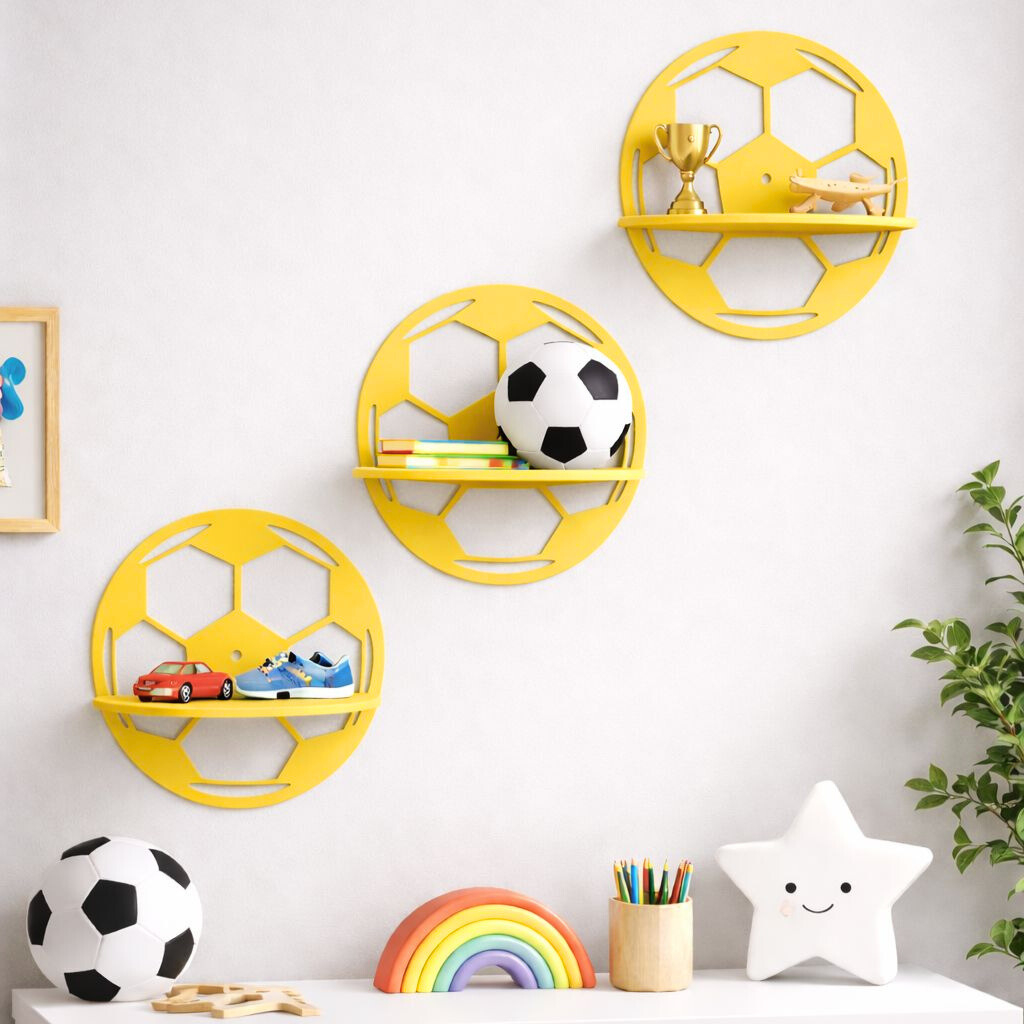 Kit 3 Nichos Prateleira Bola Futebol Para Bebê Infantil Quarto e Sala
