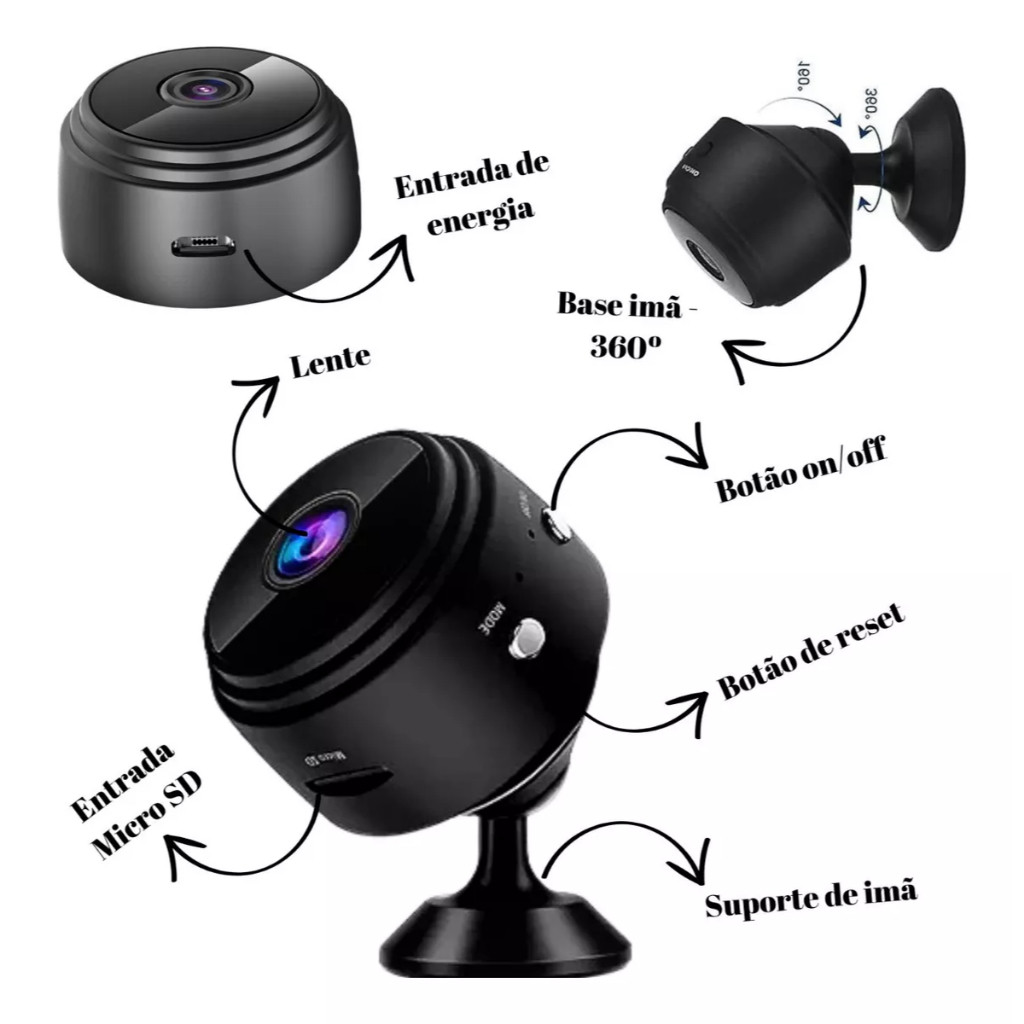 Kit 3 Novo A9 HD Mini com visão noturna Wifi Câmera 1080P Vigilância