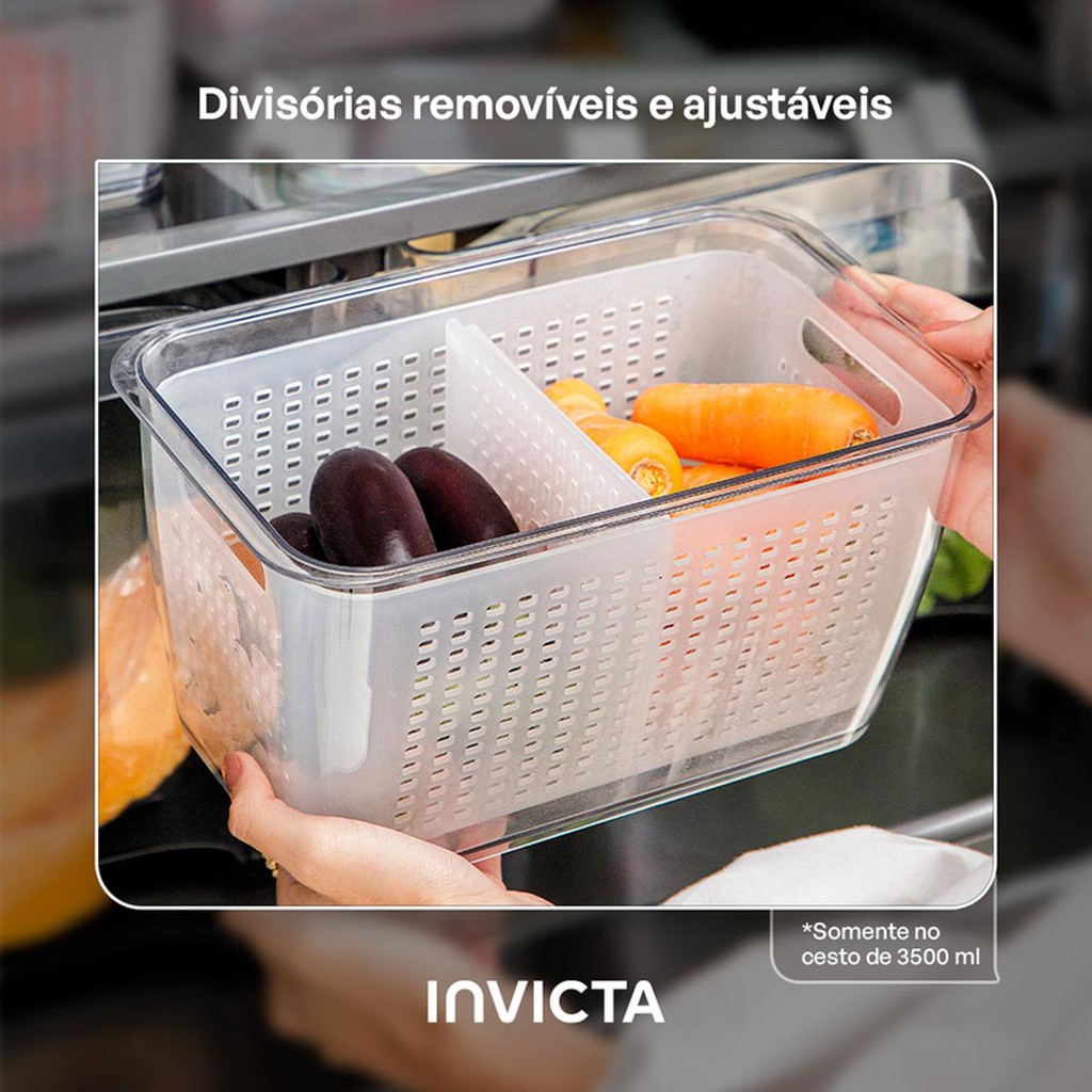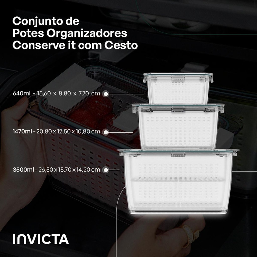 Kit 3 Organizadores de Geladeira com Cesto Conserve It Resistente - Invicta