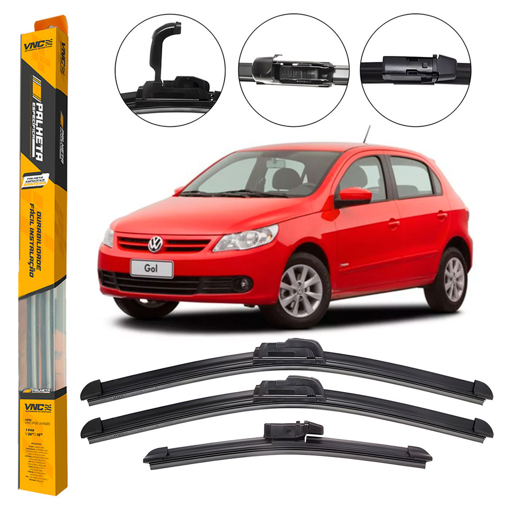 Kit 3 Palhetas para Limpador de Parabrisa Dianteiro + Traseiro Gol G5 GV 2008 2009 2010 2011 2012