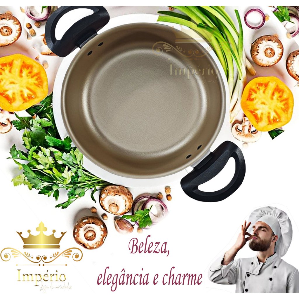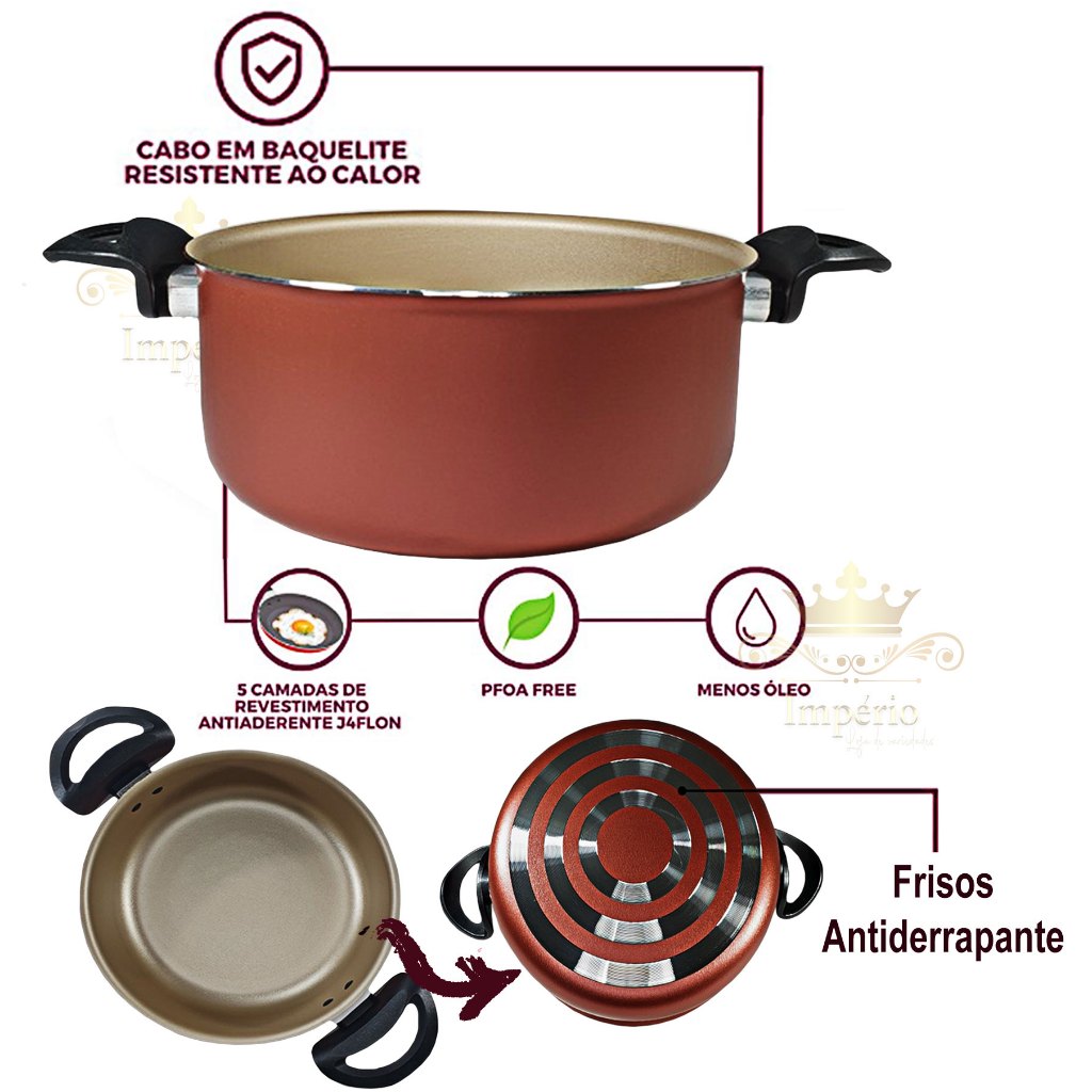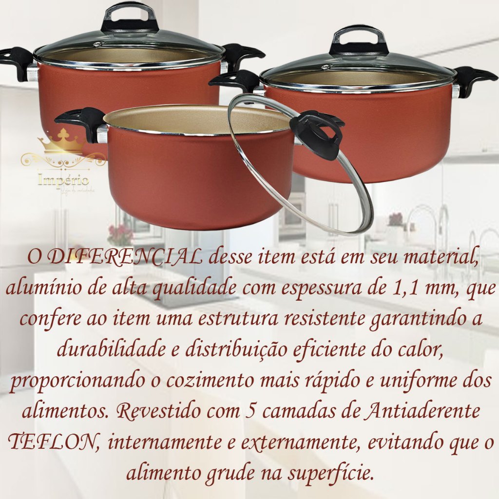 Kit 3 Panelas Caçarolas 16 18 20cm 5 Camadas Antiaderente Teflon Cereja Dourada Bege Cobre Com Tampa De Vidro Grossa