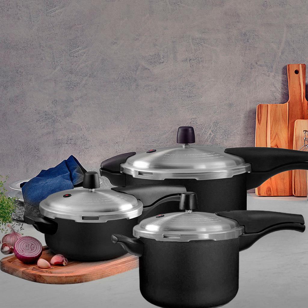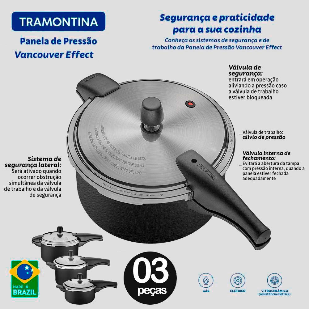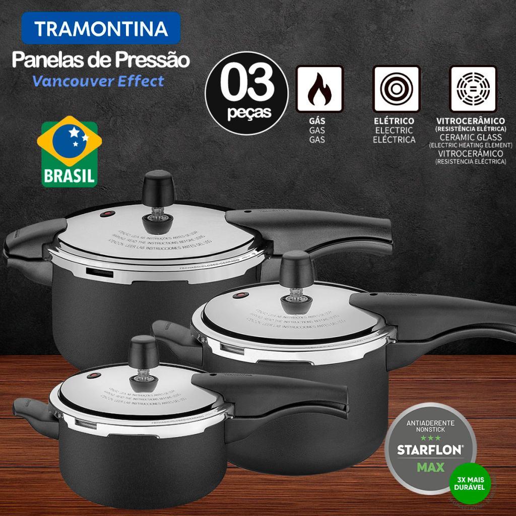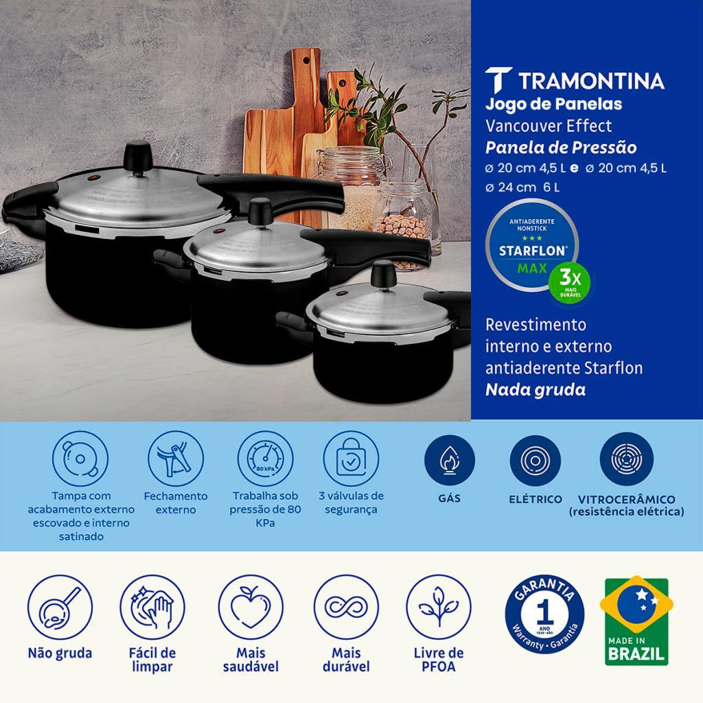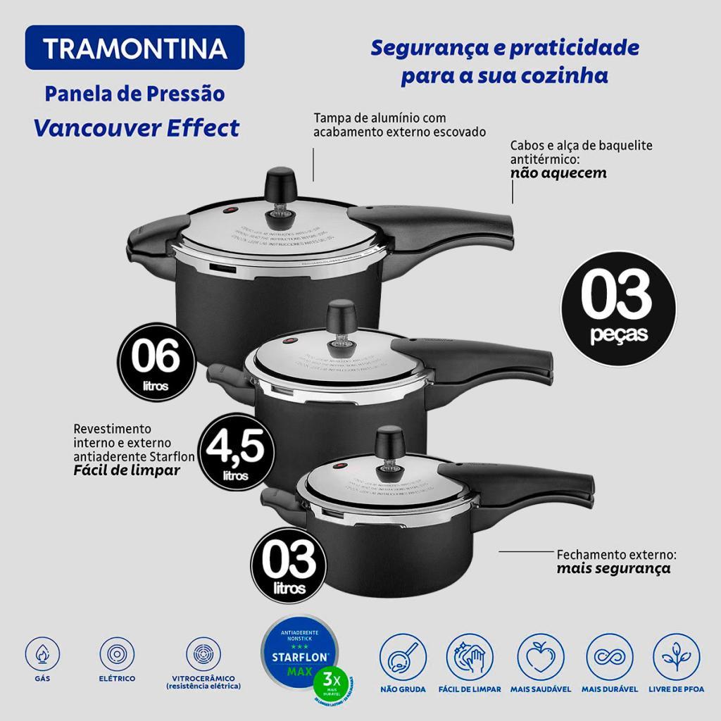 Kit 3 Panelas de Pressão Tramontina Vancouver Effect Pretas 3L, 4,5Lts e 6Litros - 3 peças