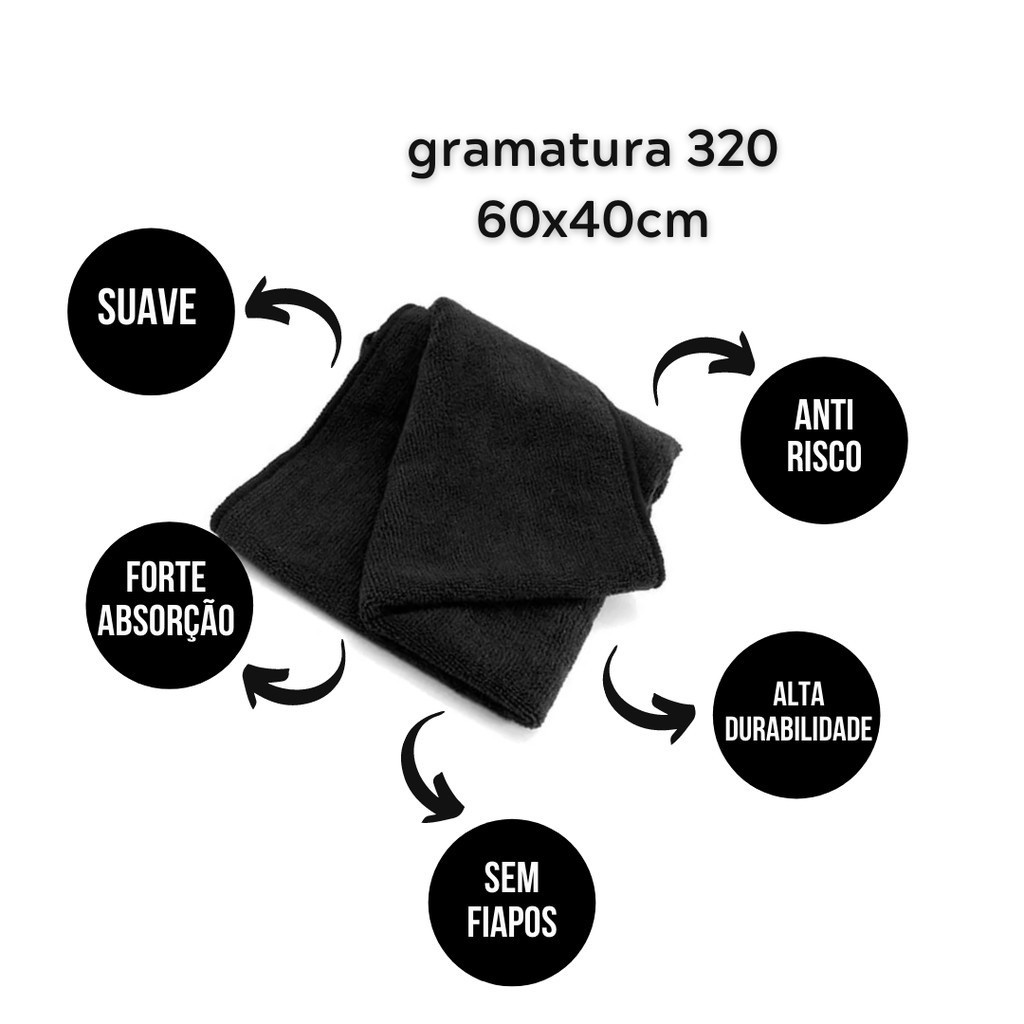 Kit 3 Pano Mágico Microfibra Grande Preto 60x40cm Anti Risco Automotivo Lava Seco Não Solta Fiapos