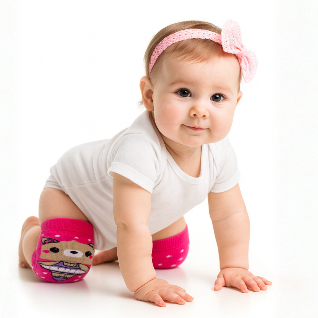 Kit 3 Pares Joelheira Antiderrapante Bebe Engatinhar Menino e Menina Protetor Joelho Segurança