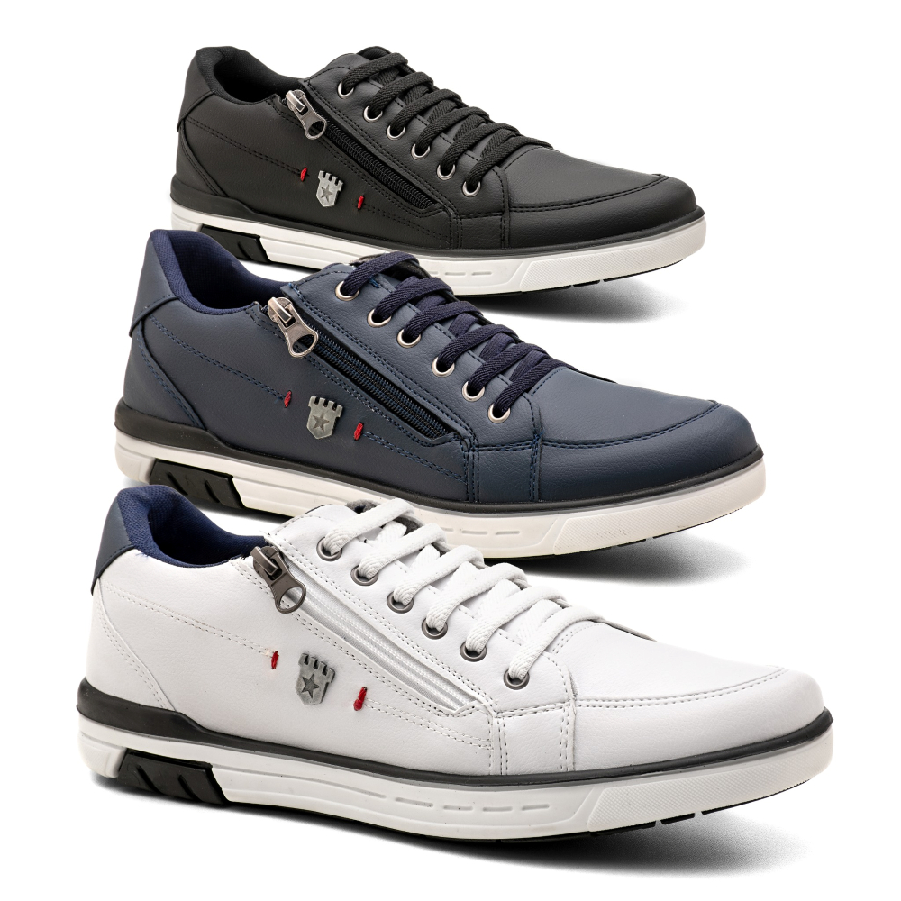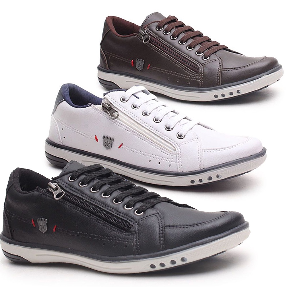 Kit 3 Pares Sapatênis Masculino Calce Facil Versales Tamanho Especial 189 Branco Marrom Preto Azul