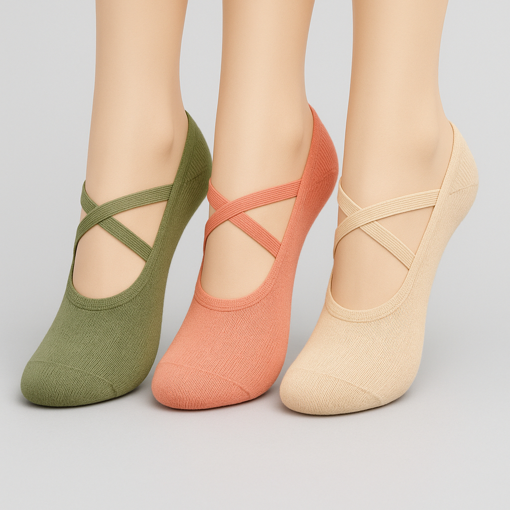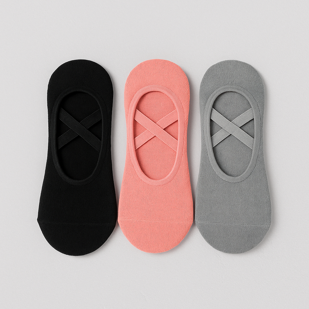 Kit 3 Pares de Meia Sapatilha Antiderrapante Feminina Adulto Lisas Básicas Sortidas Para Yoga Pilates