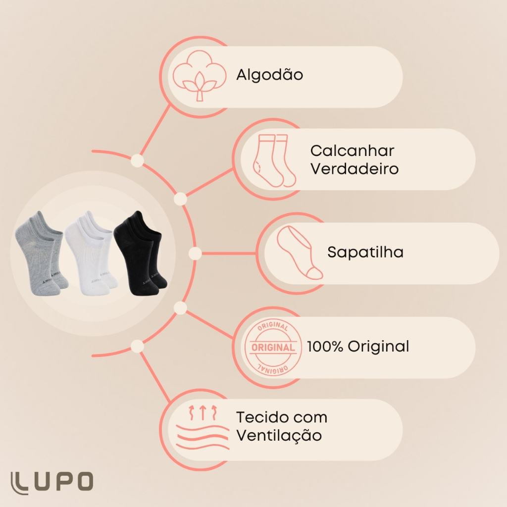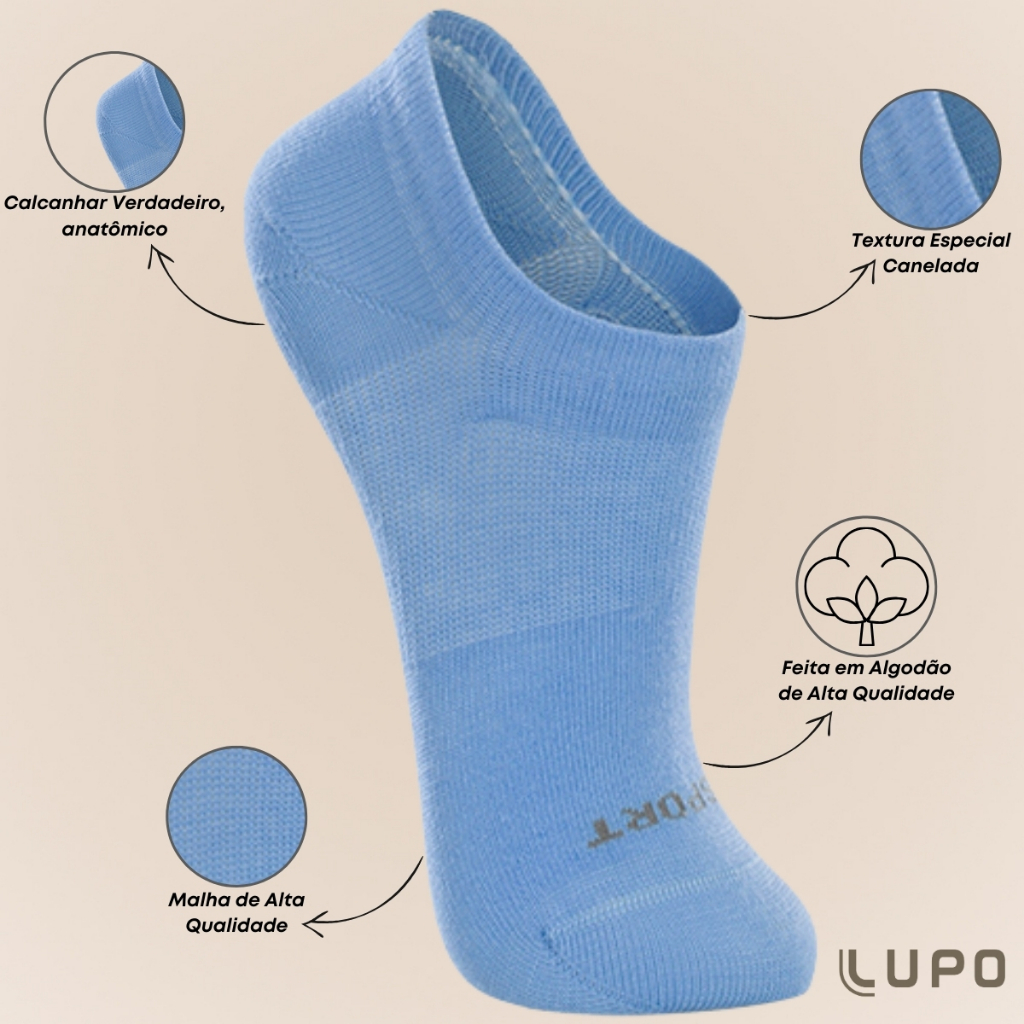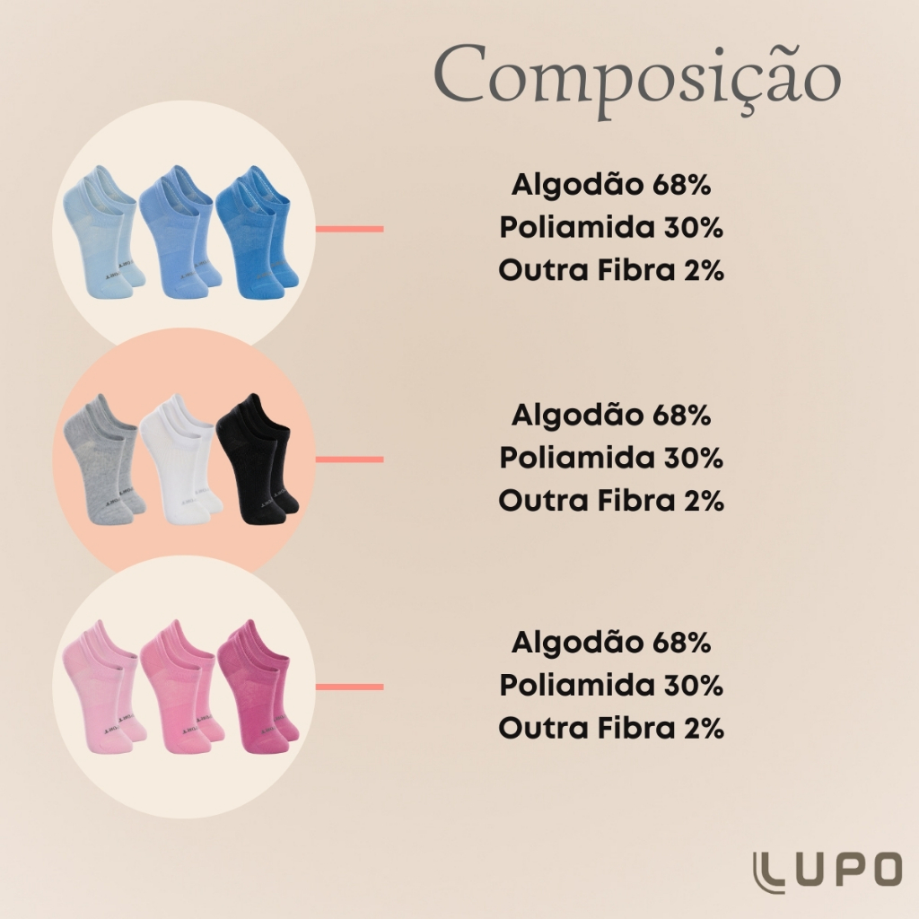 Kit 3 Pares de Meias Lupo Kids Sapatilha em Algodão Confortável Básica Lisa Unissex Infantil
