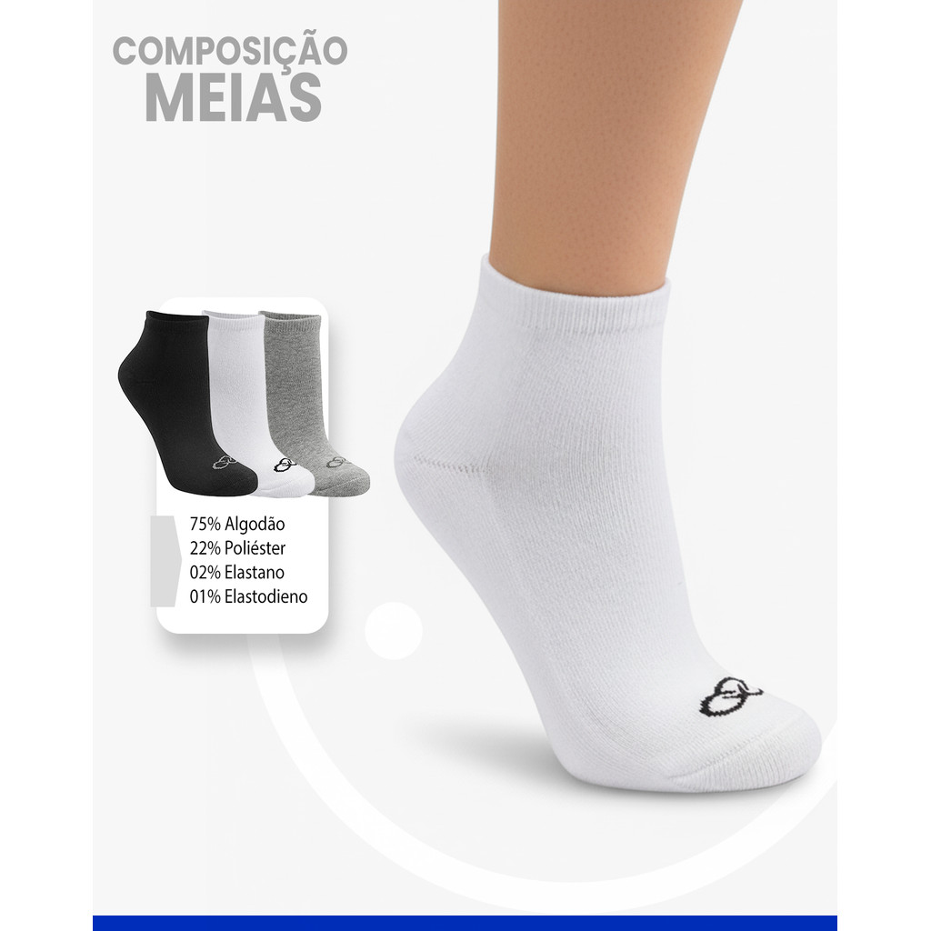 Kit 3 Pares de Meias Olympikus Cano Curto Adulto Original