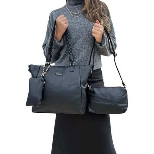 Kit 3 Pecas Bolsa Feminina Alca Trancada Estilo Tote Duravel Practica Elegante Preta