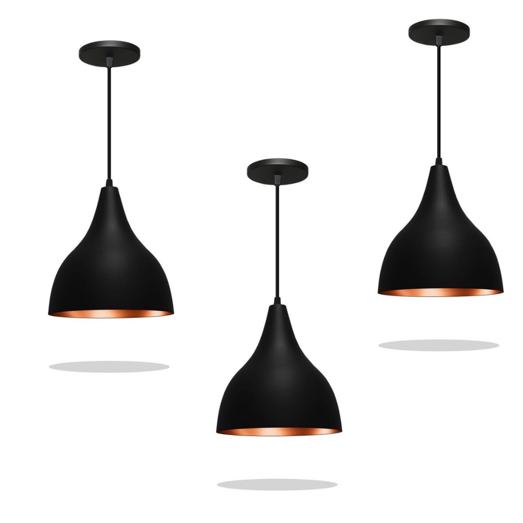 Kit 3 Pendente Gota ( Preto / Cobre )