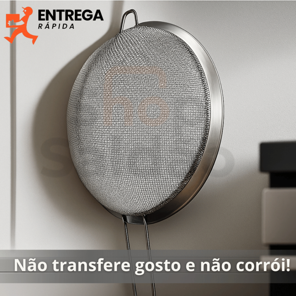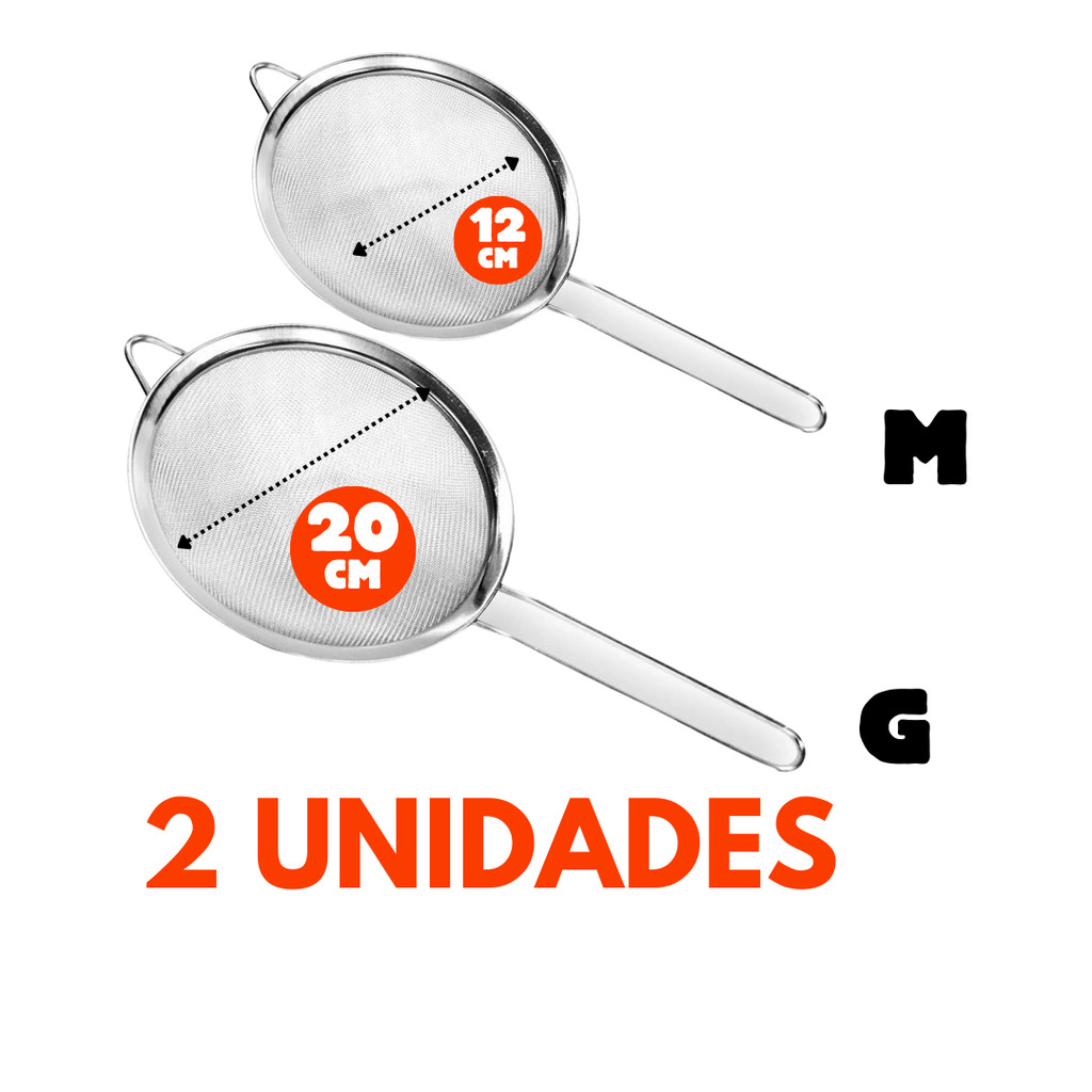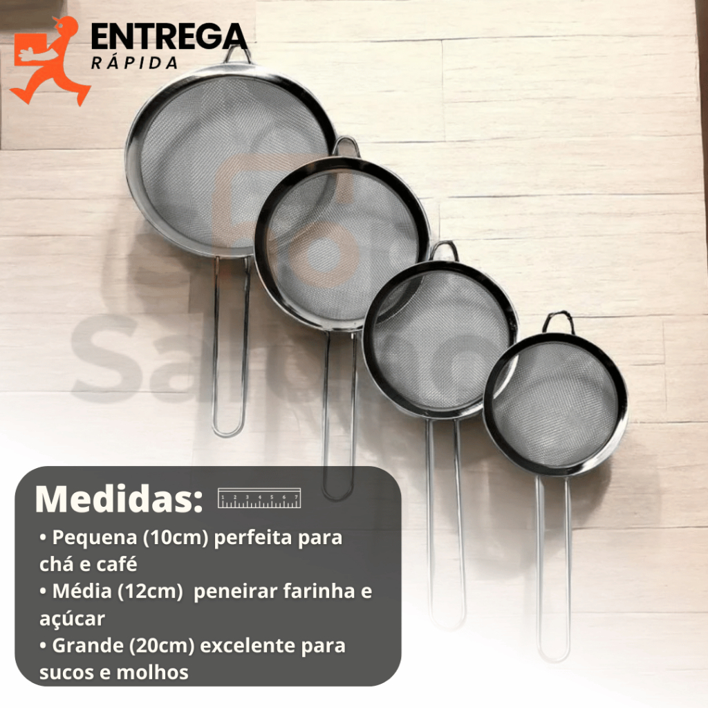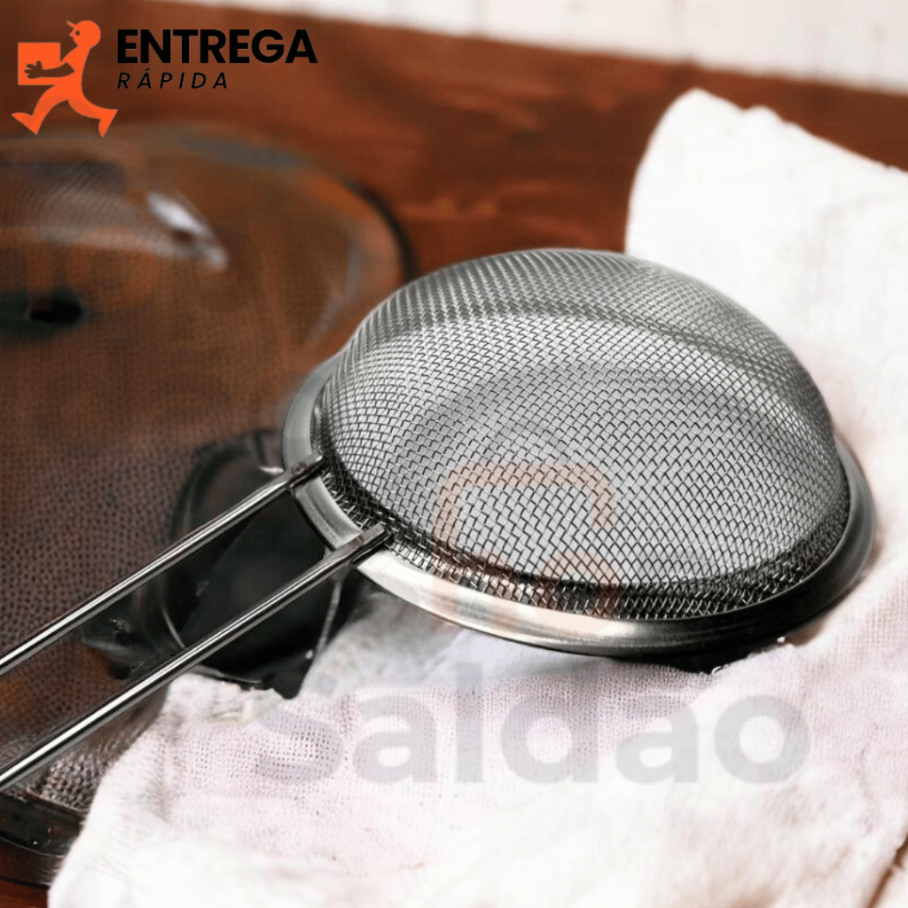 Kit 3 Peneira de Cozinha Aço Inox 10cm 12cm e 20cm Utensílios Grande para Confeitaria e Tapioca