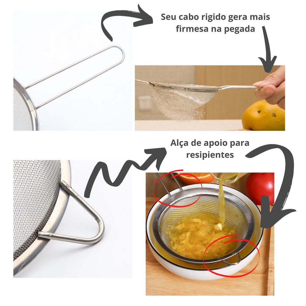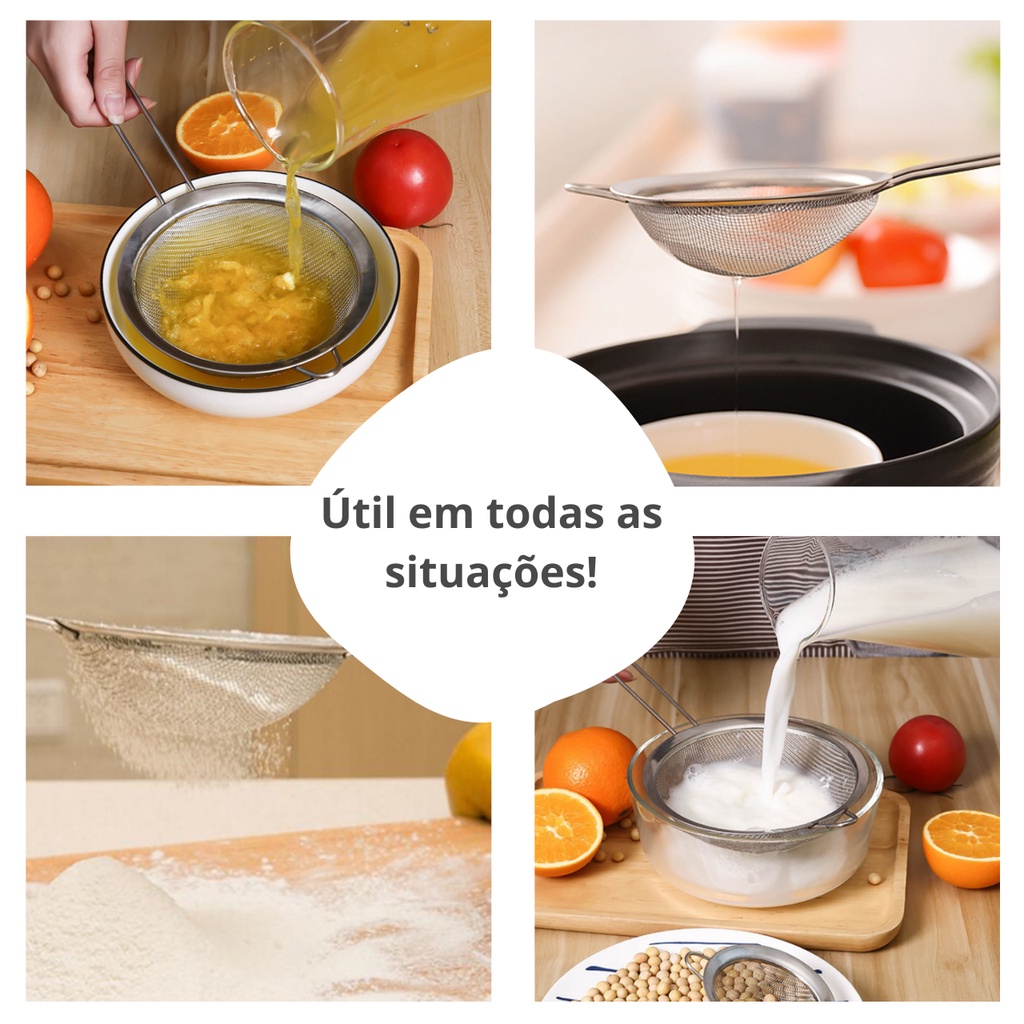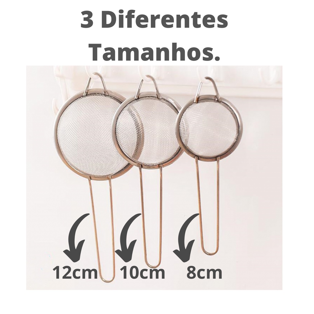 Kit 3 Peneiras Aço Inox Luxo Pequena Média e Grande Utensílios De Cozinha com 3 tamanhos diferentes 8, 10 e 12 cm