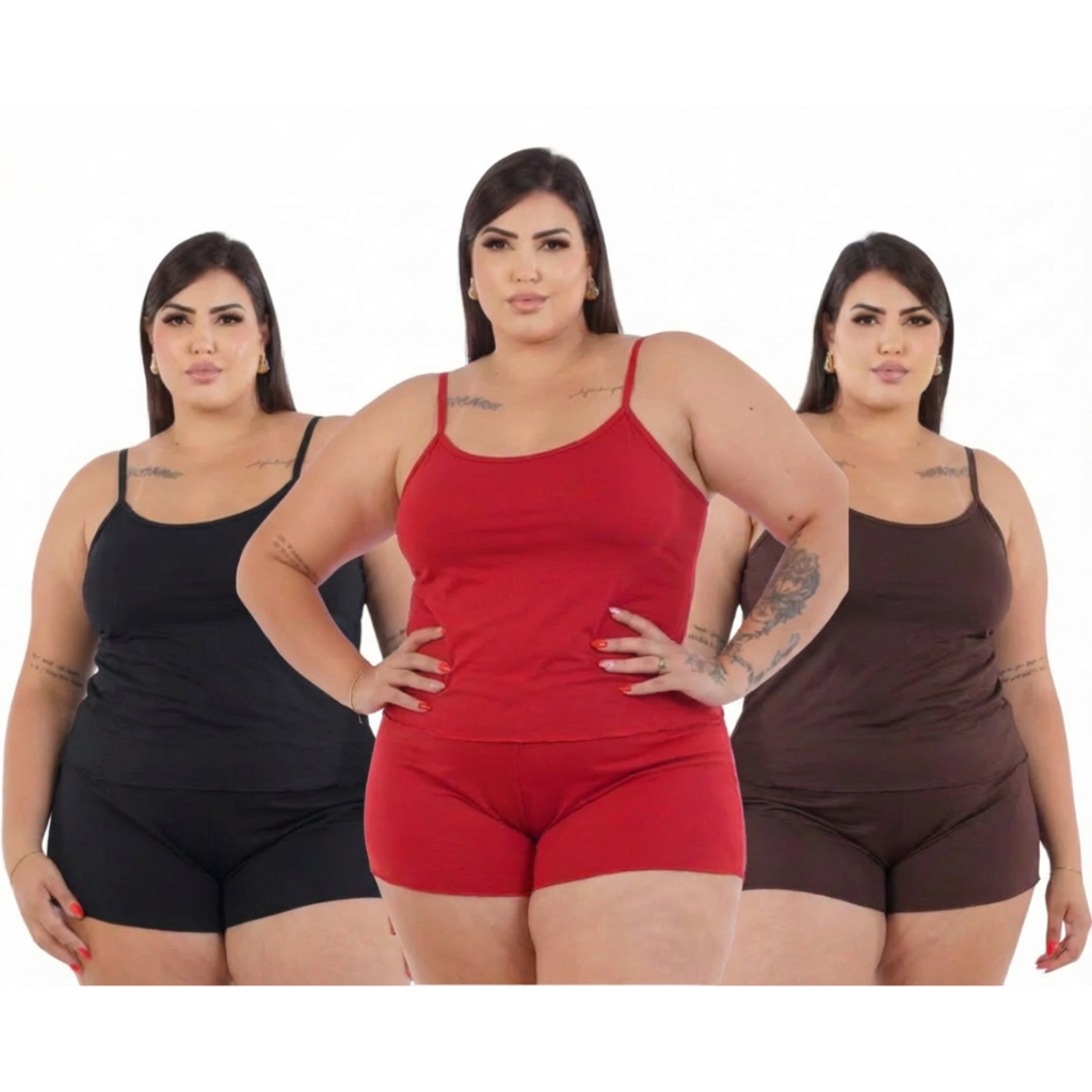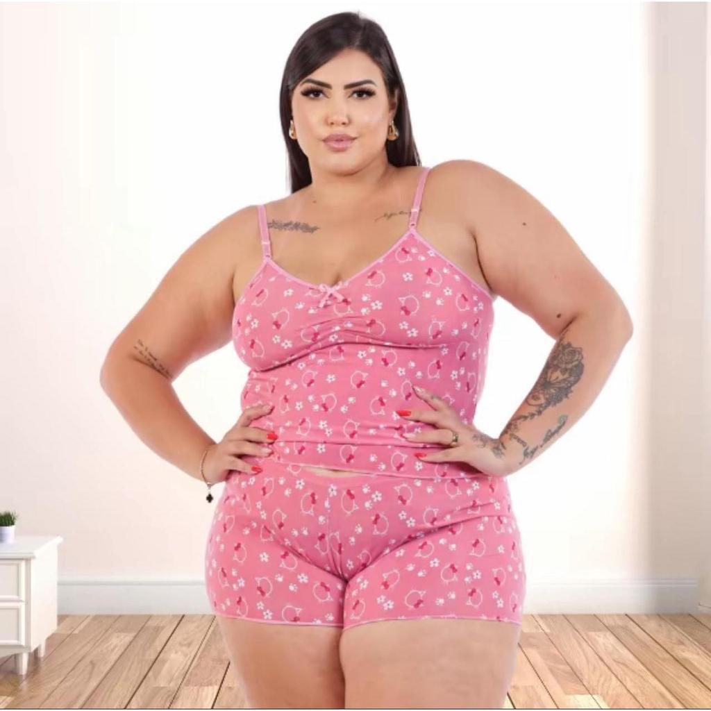 Kit 3 Pijama Verão Baby Doll PLUS SIZE Short Doll MICRO ESTAMPADO Feminino Noite Fresquinho