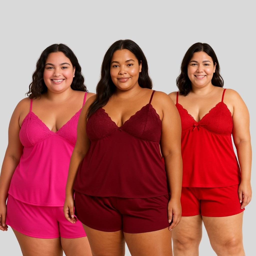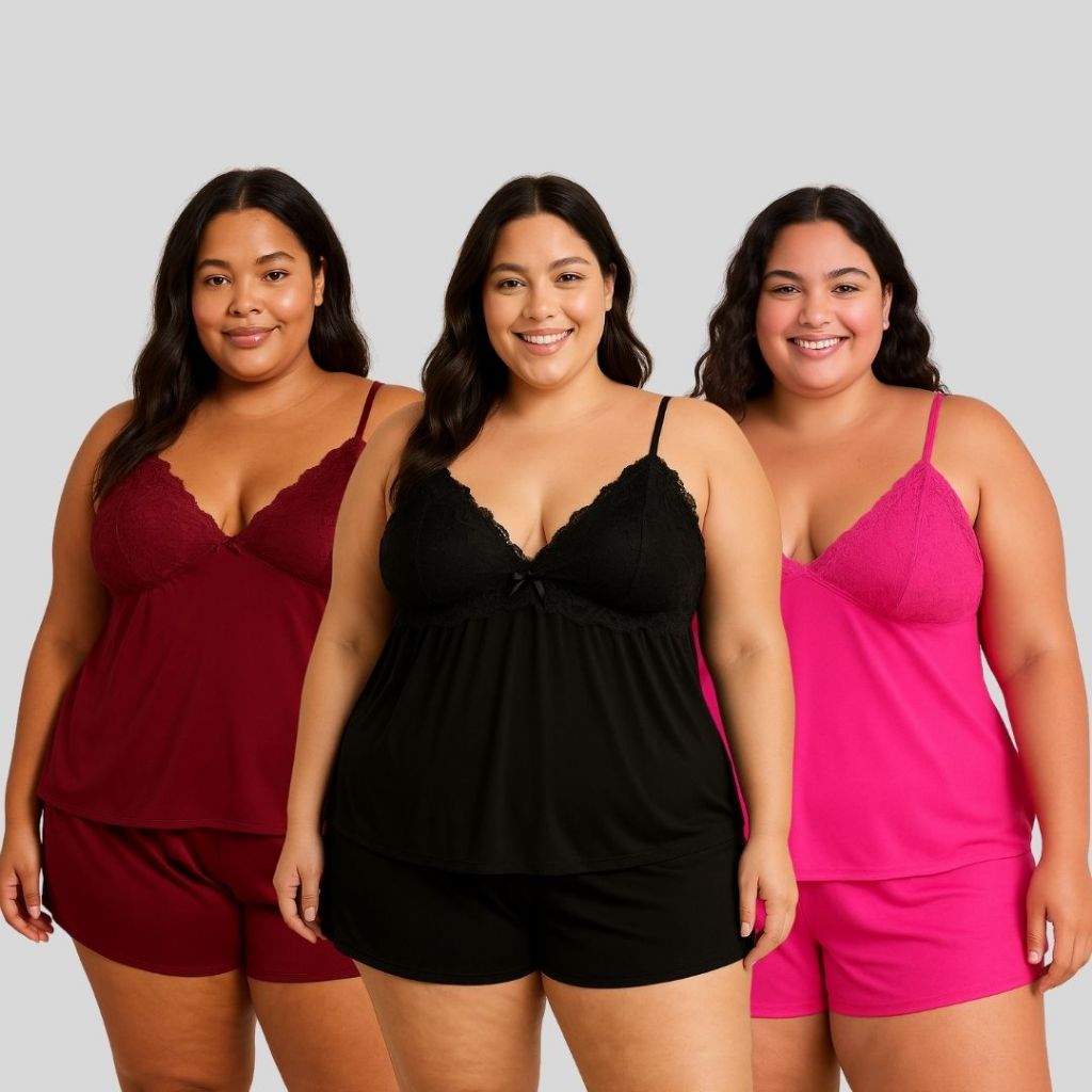 Kit 3 Pijamas Feminino Plus Size Liso Baby Doll Short Super Confortável Moda Feminina