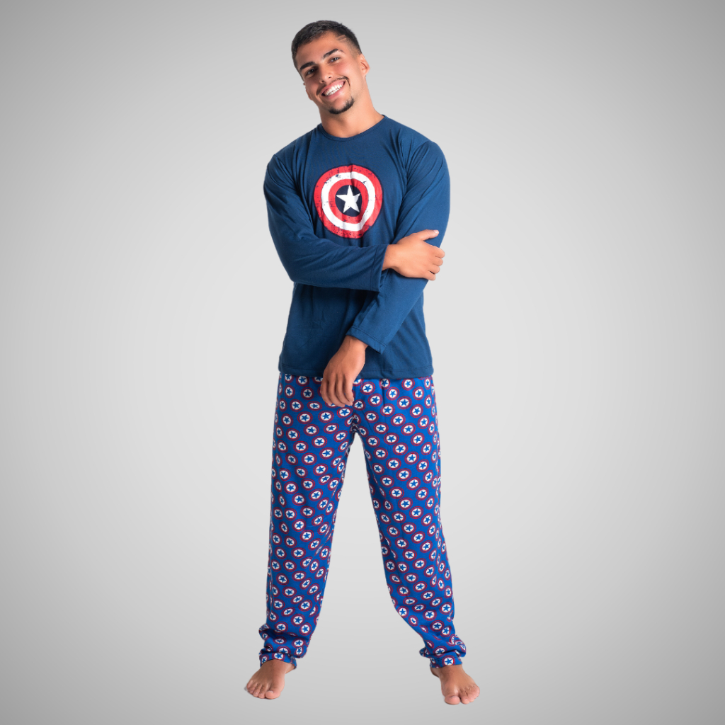 Kit 3 Pijamas Masculino Adulto Super Herói Conjunto Calça Manga Longa Personagem Roupa de Dormir Adolescente 326