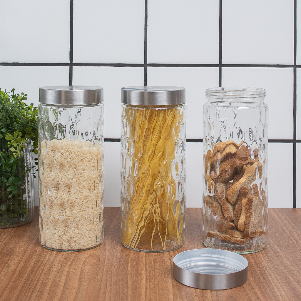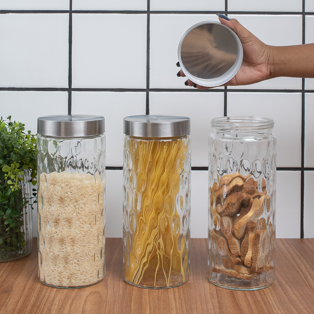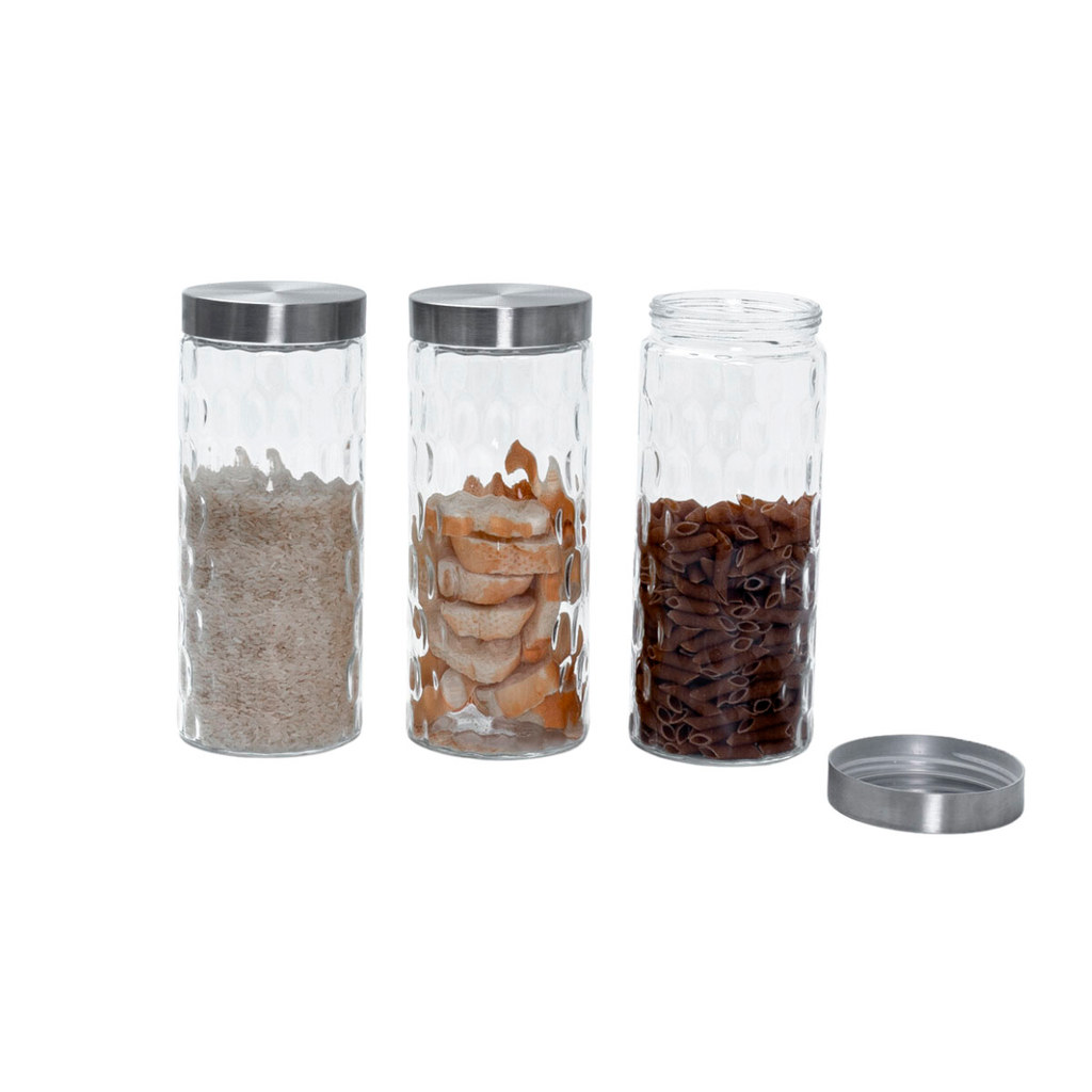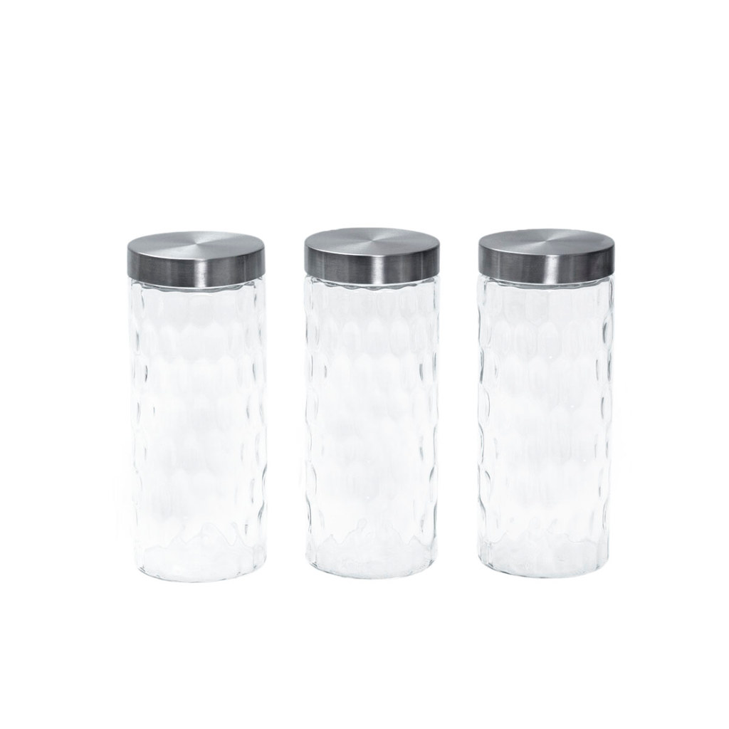 Kit 3 Potes de Vidro com Tampa Inox Bolhas Redondo 2200ml - Mozcada