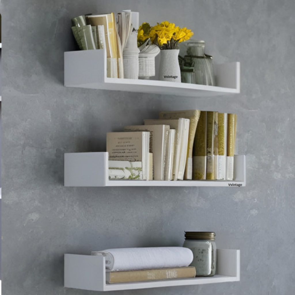Kit 3 Prateleiras Nicho em U Multifuncional 50x15x10 – Suporte para Livros Jogos Decoração