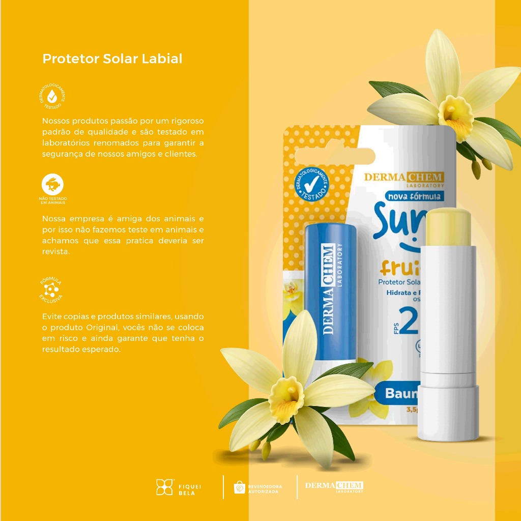 Kit 3 Protetor Solar Labial Baunilha FPS 24 3,5g Dermachem