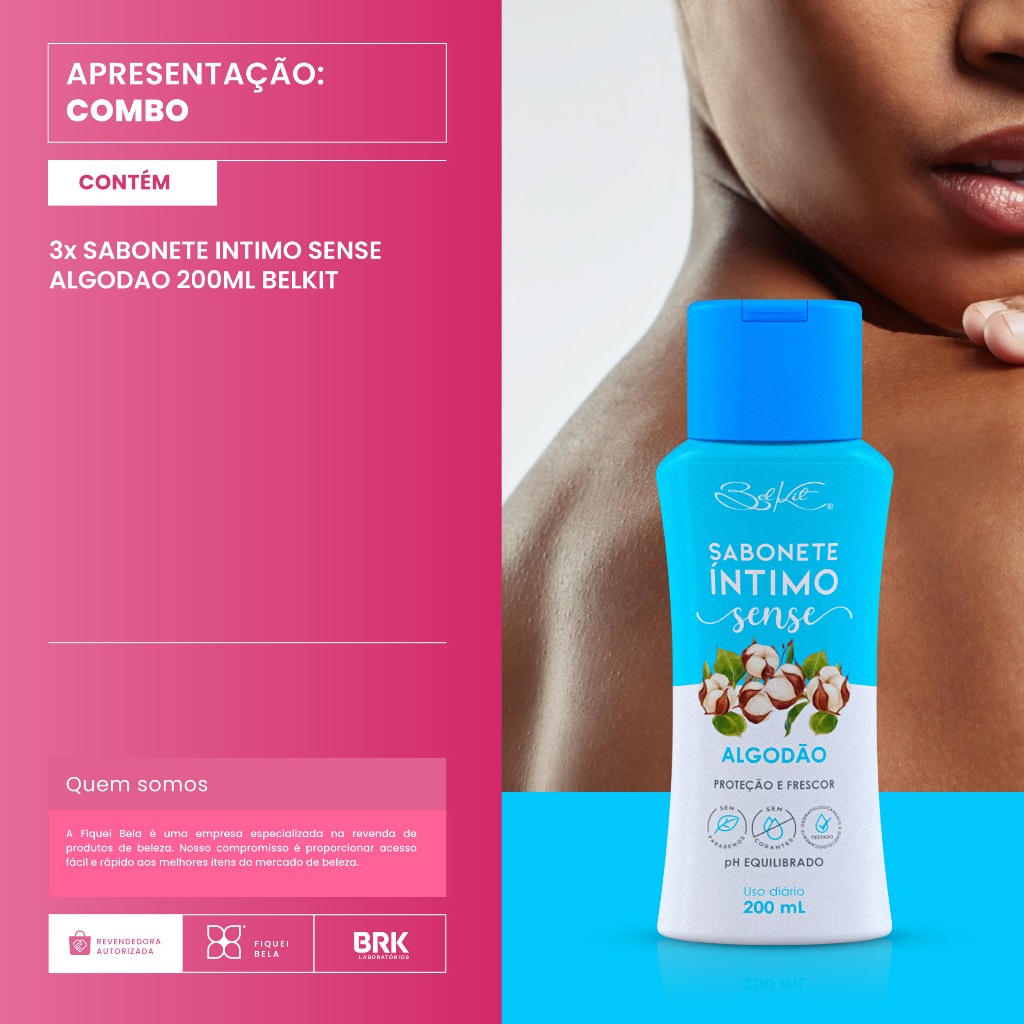 Kit 3 Sabonete Íntimo Sense Algodão 200ml Belkit