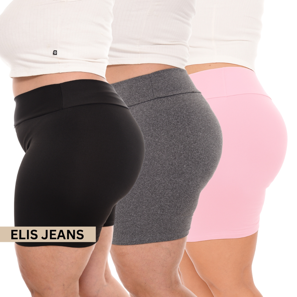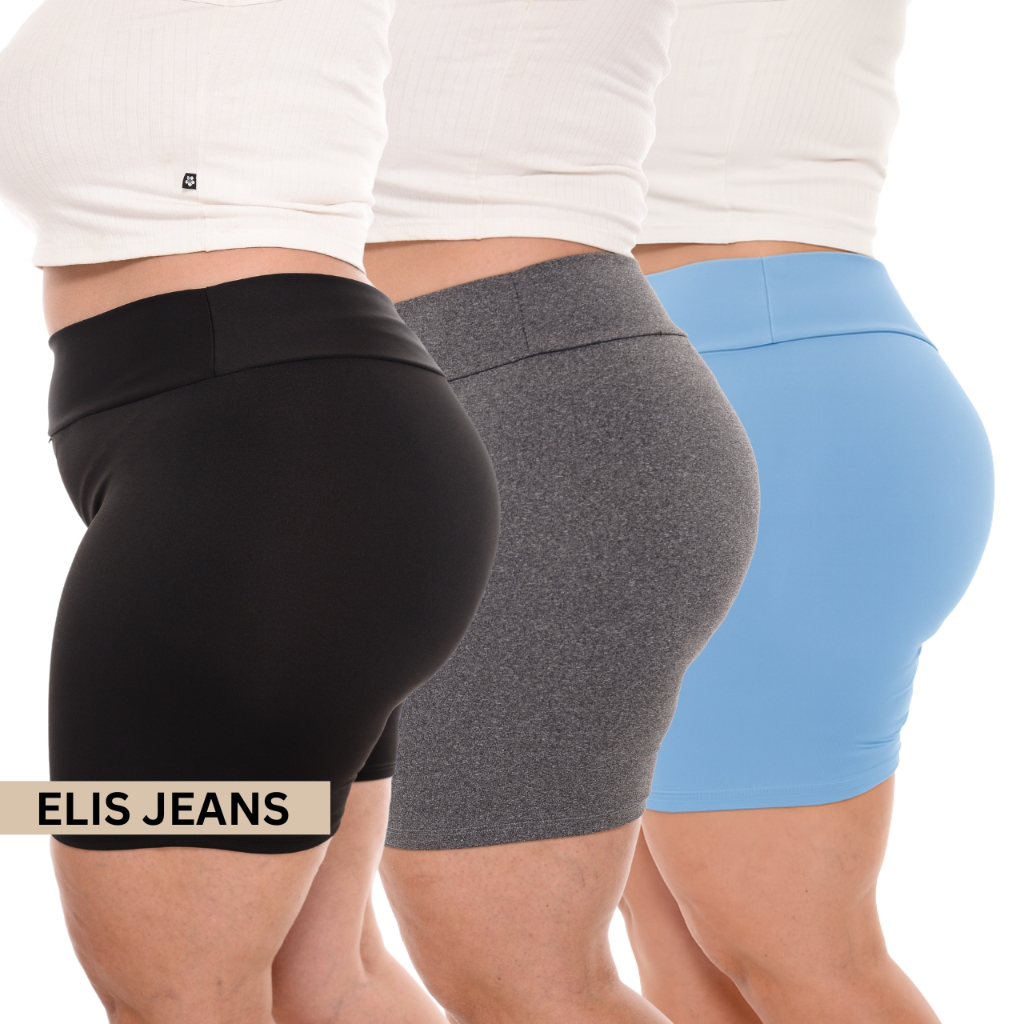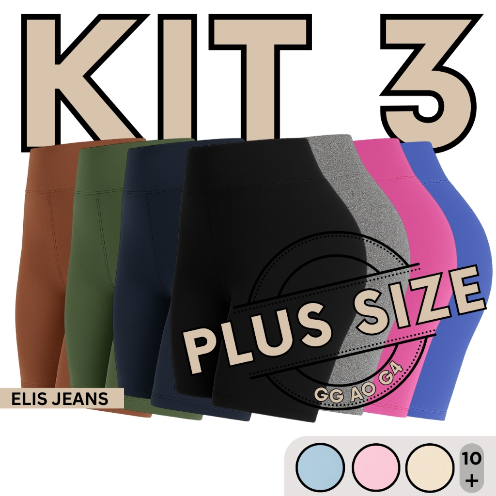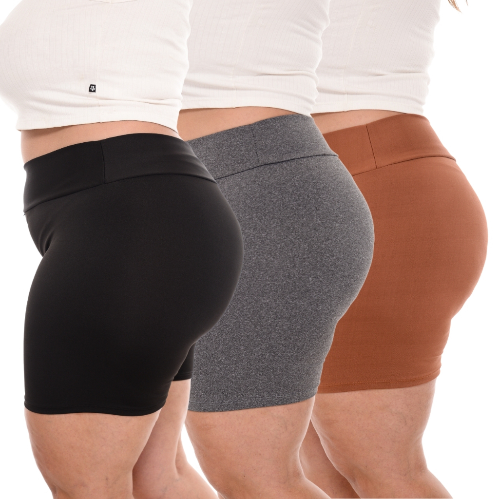 Kit 3 Shorts Feminino Plus SizeFitness Meia Coxa Short Cintura Alta Bermuda Legging Zero Transparência