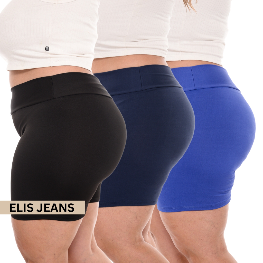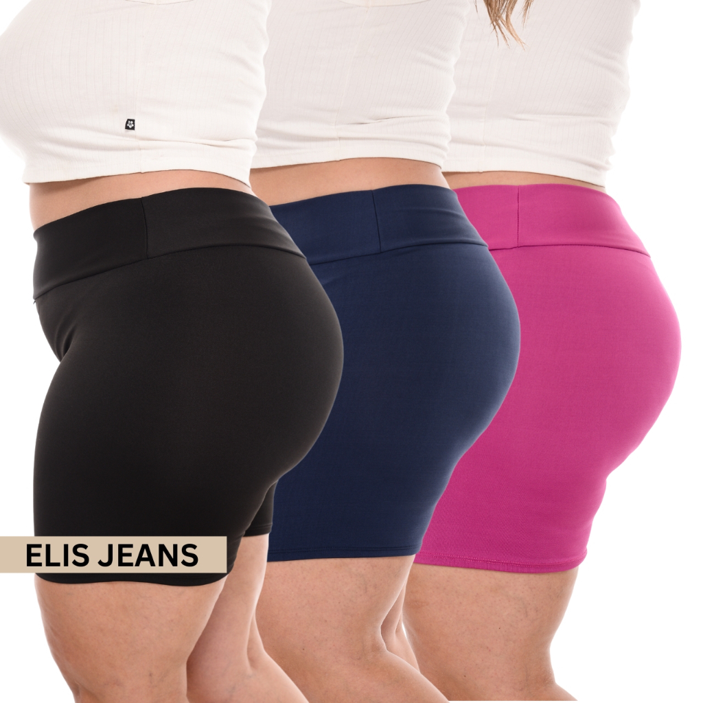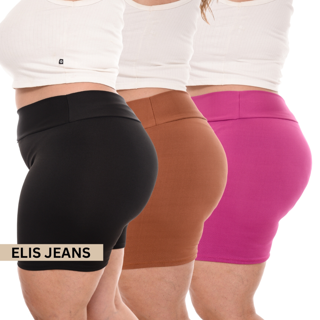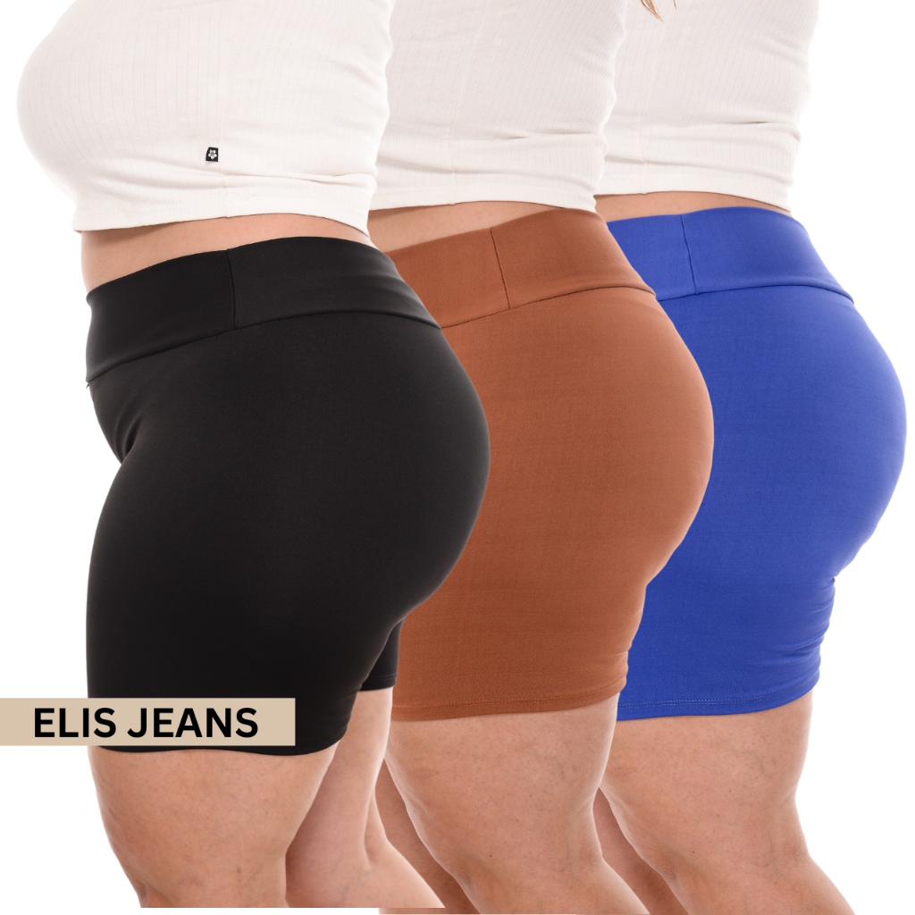Kit 3 Shorts Feminino Plus SizeFitness Meia Coxa Short Cintura Alta Bermuda Legging Zero Transparência