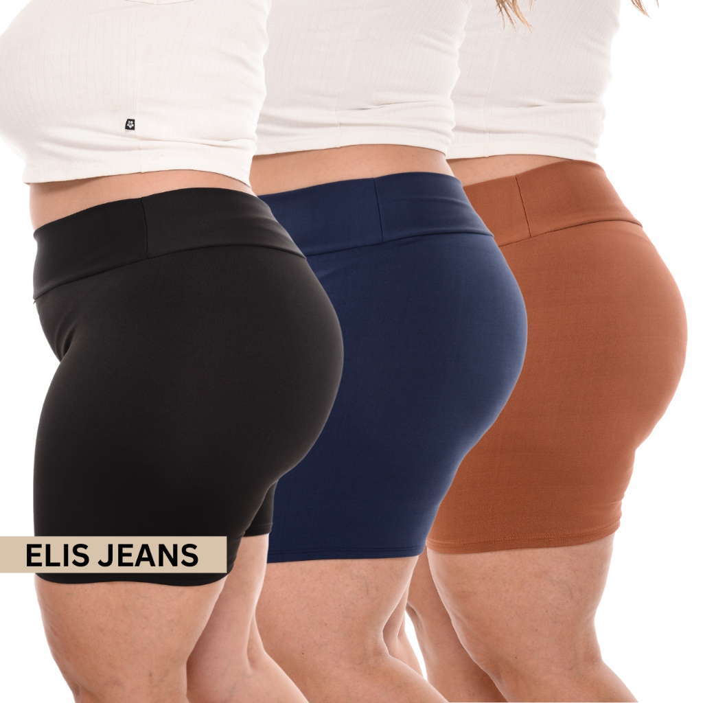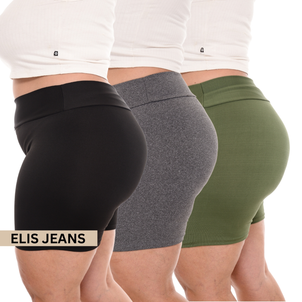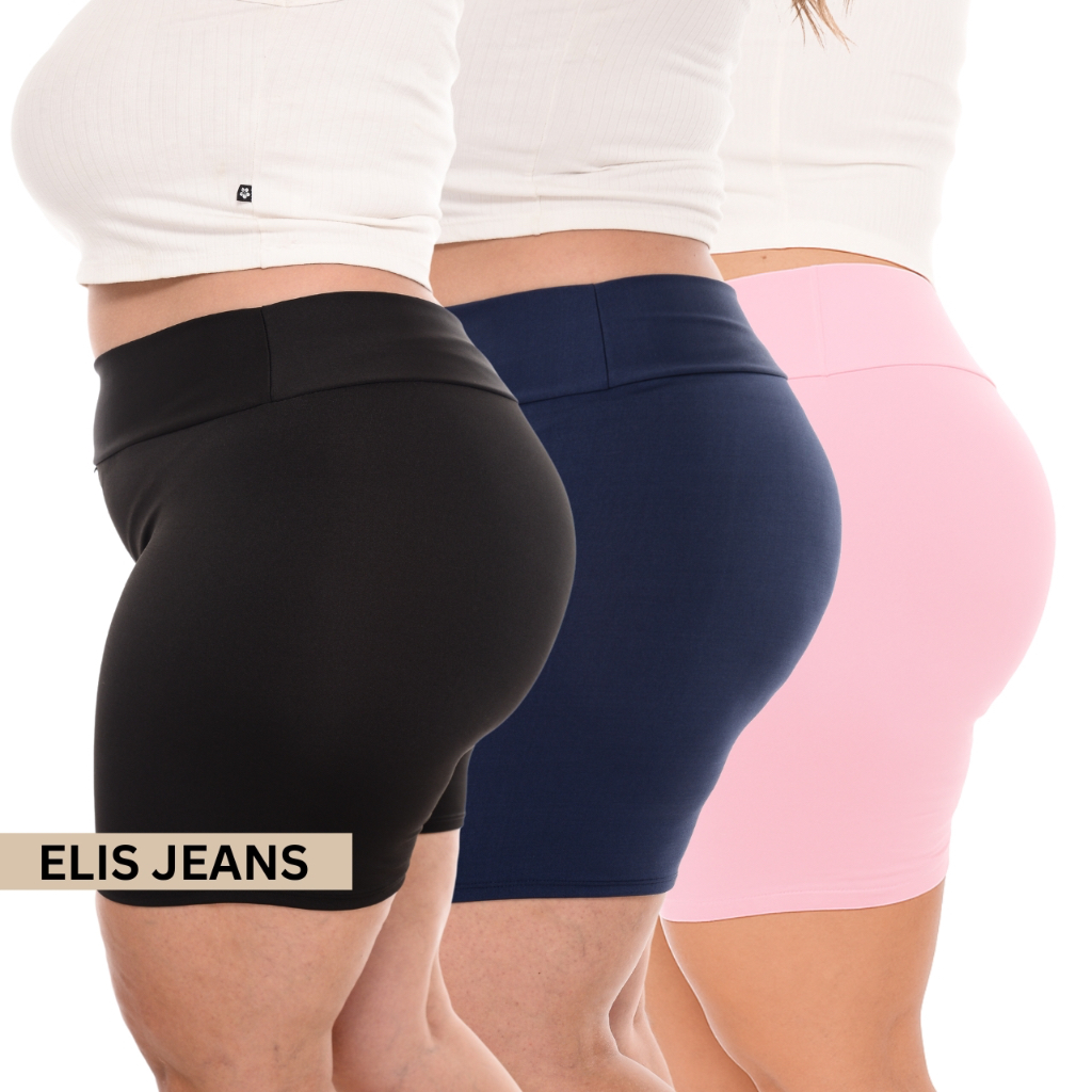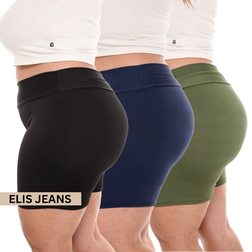 Kit 3 Shorts Feminino Plus SizeFitness Meia Coxa Short Cintura Alta Bermuda Legging Zero Transparência