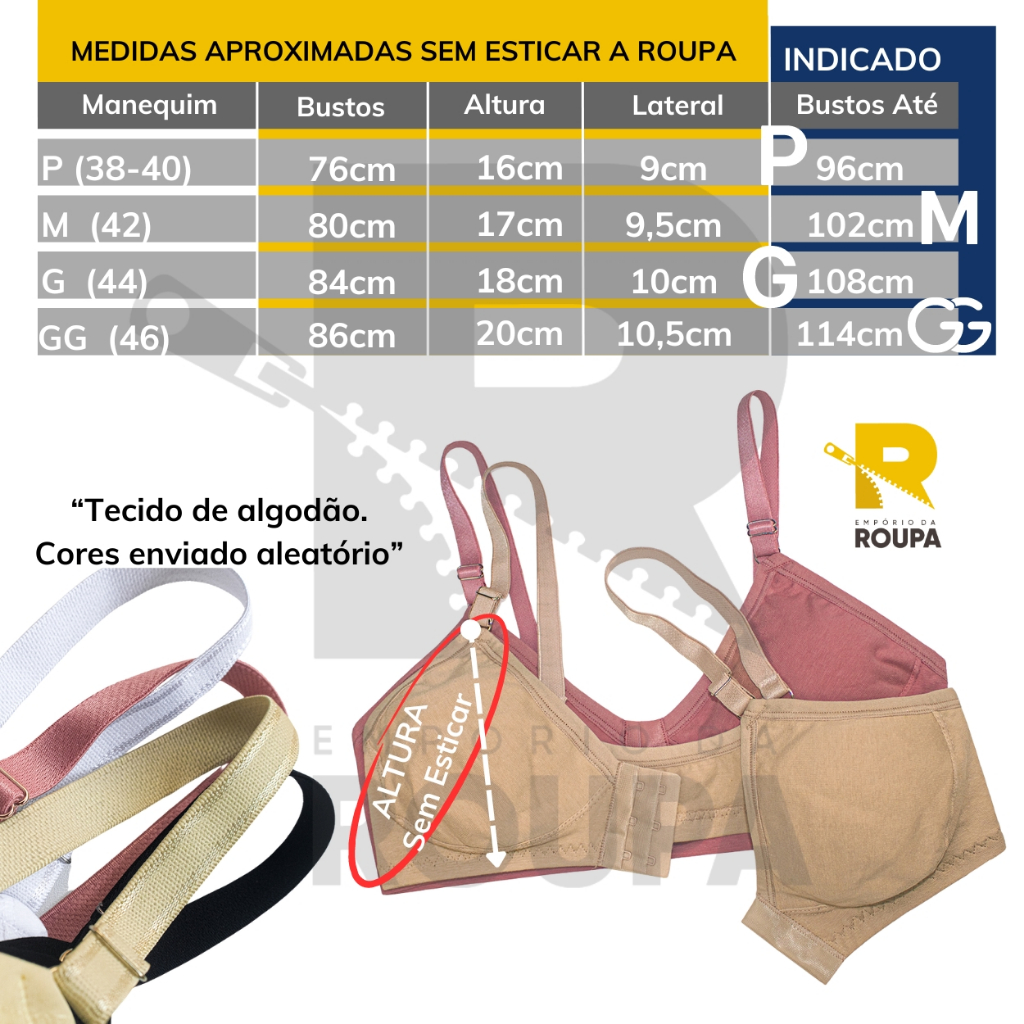 Kit 3 Sutiã Fecho Frontal Sem Bojo Reforçado Algodão Sem Aro Conforto Empório Da Roupa