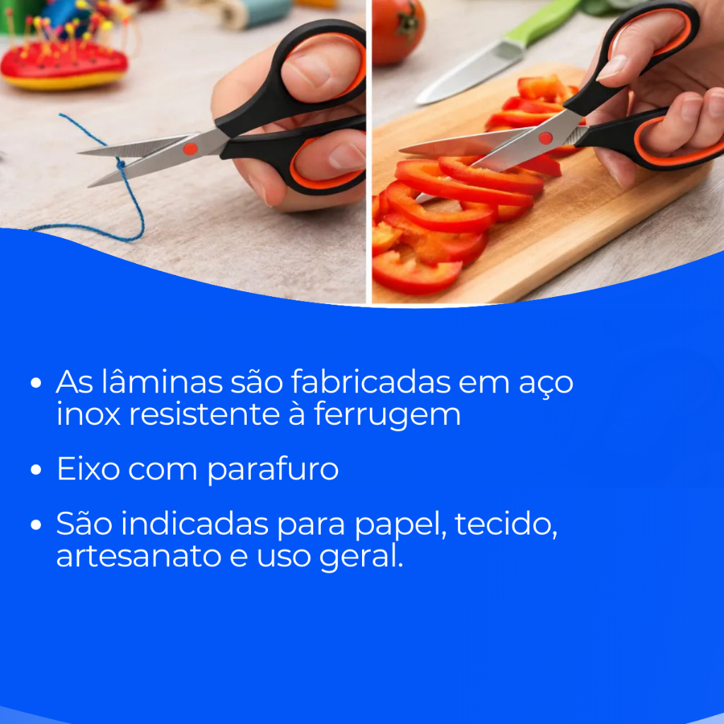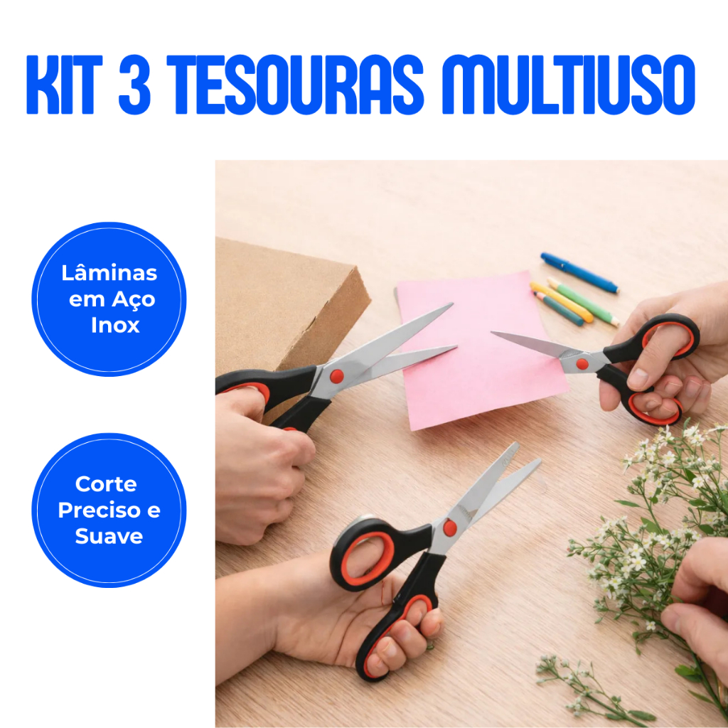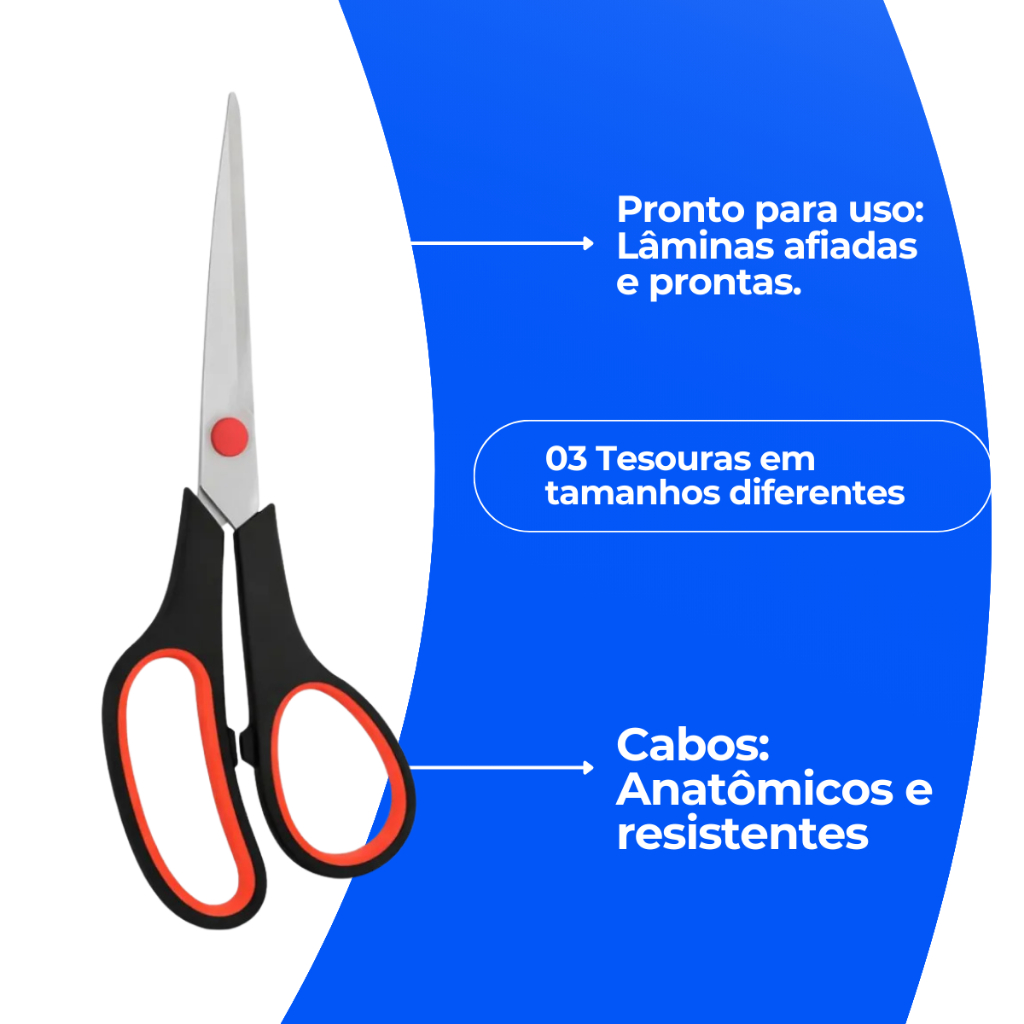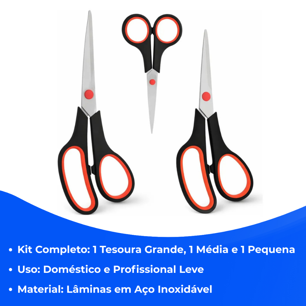Kit 3 Tesouras Em Aço Inox Corte Costura Artesanato Domestico e profissional 5" 7" 7,5"