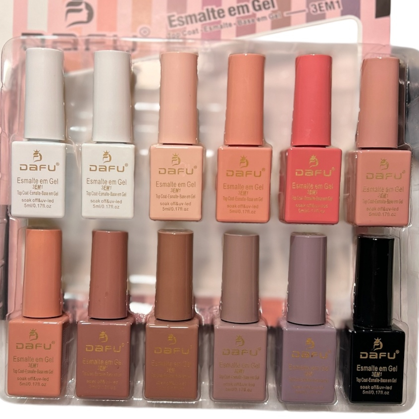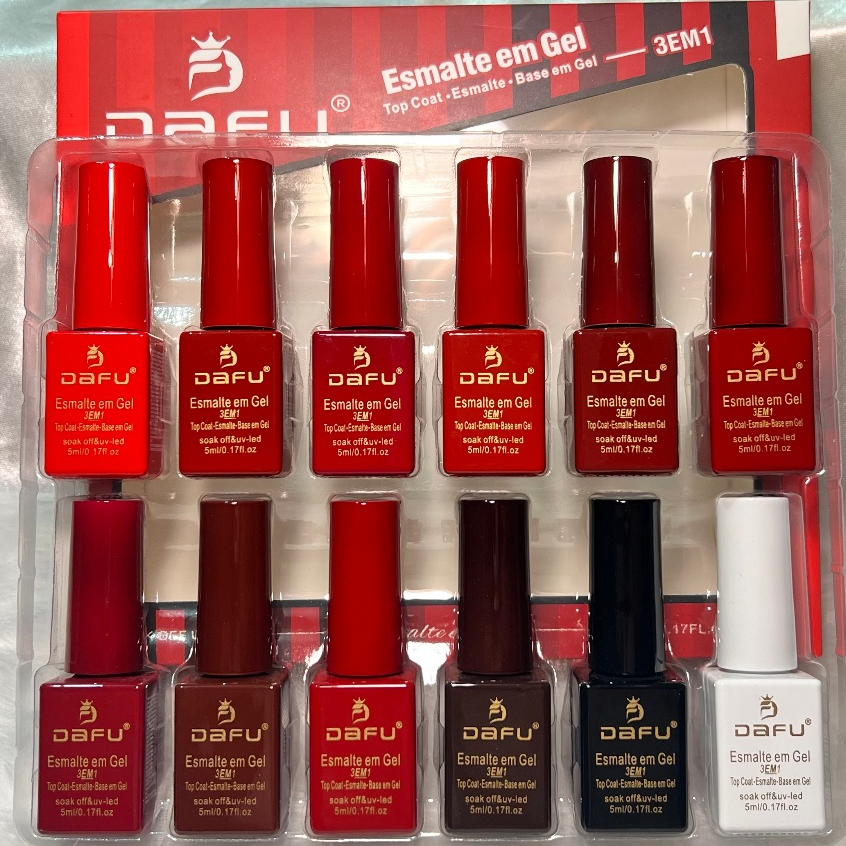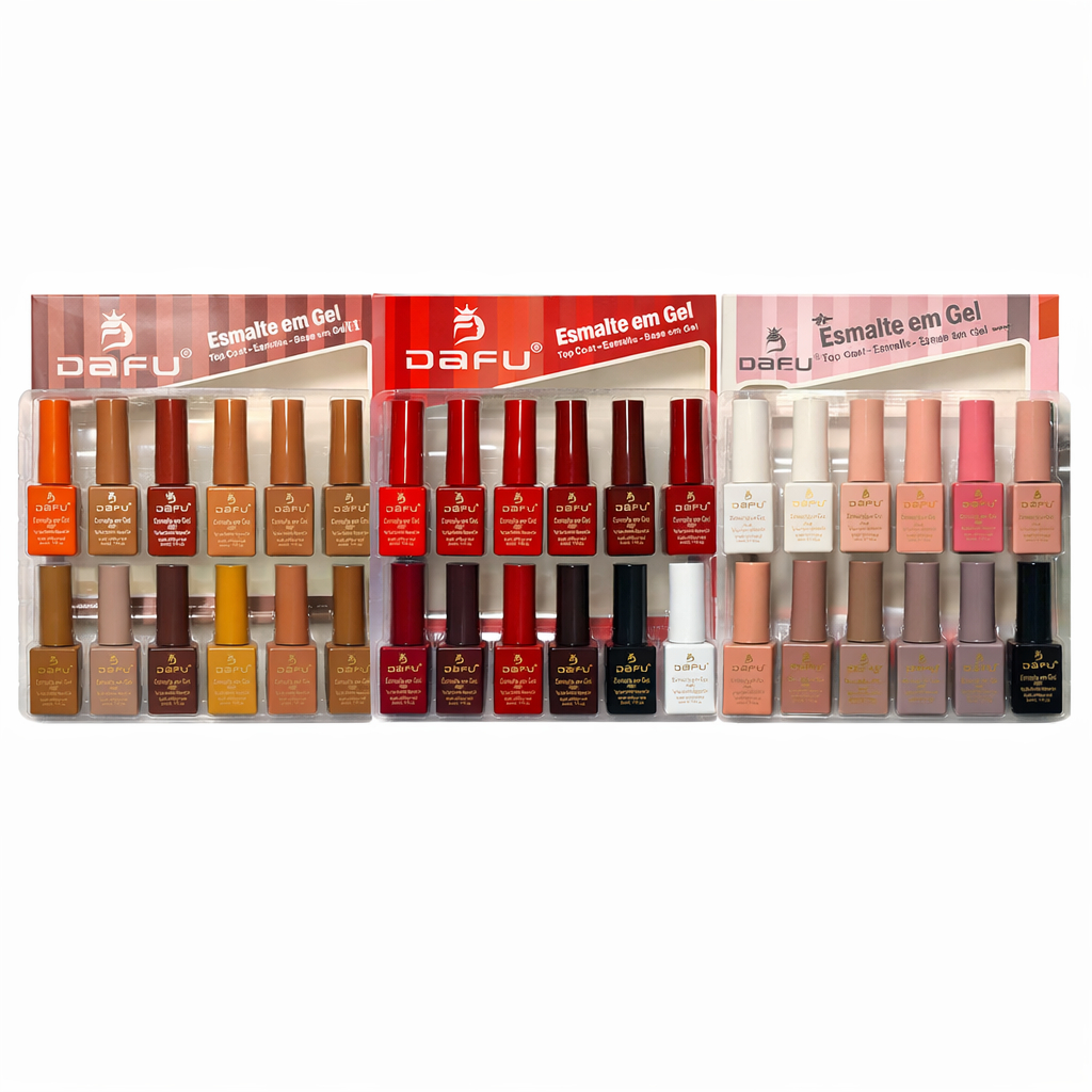 Kit 3 caixas Esmalte em Gel 3 em 1 Dafu Tons Nude Marrom Vermelho 15 ml