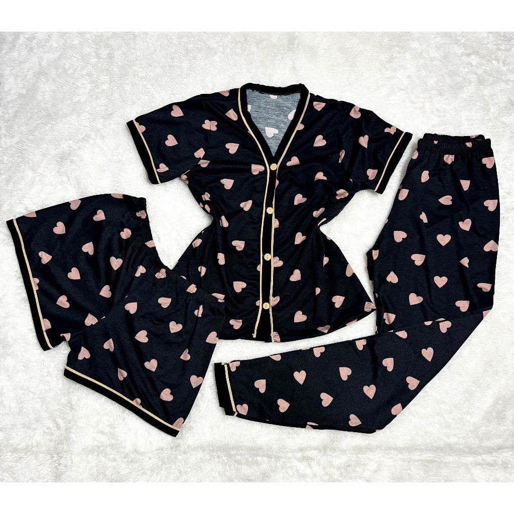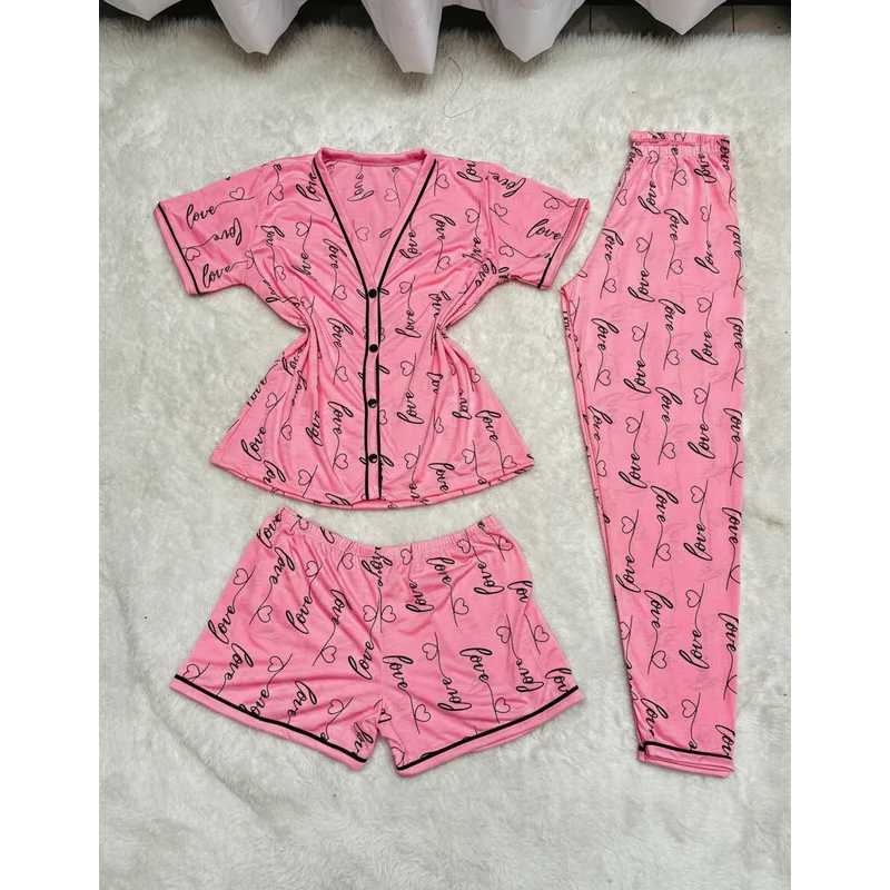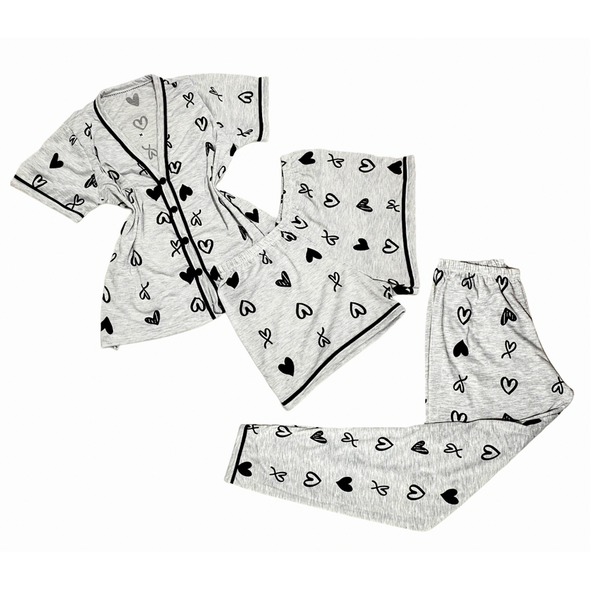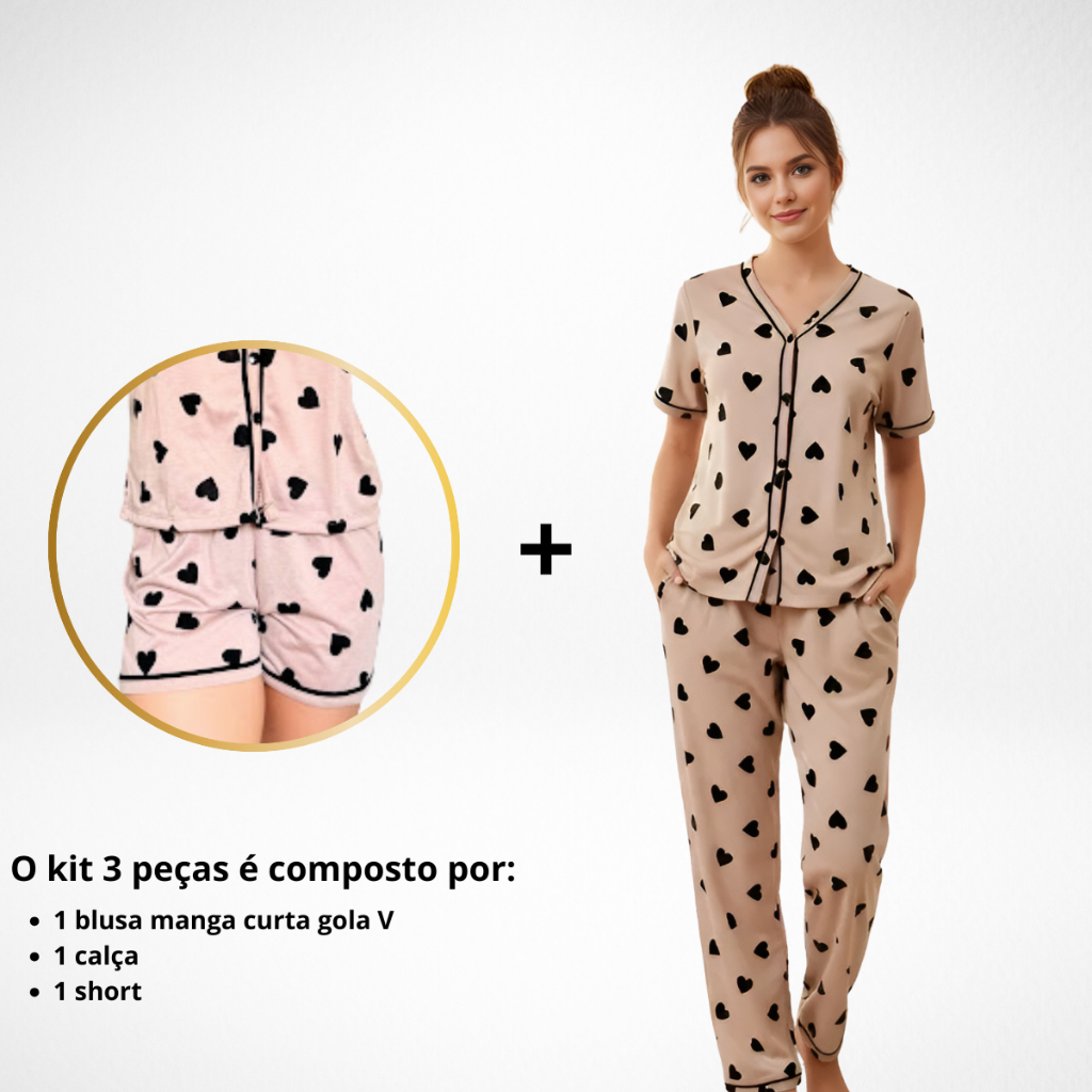 Kit 3 em 1 Pijama Americano Feminino Camisa Botões short calça Frio/Calor Malha Amamentação Conforto
