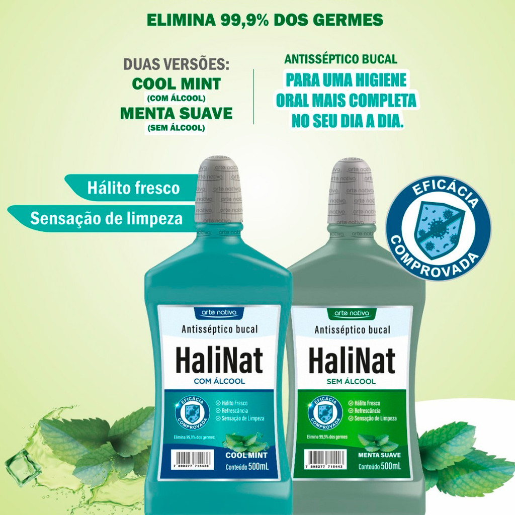 Kit 3 und Halinat Antisseptico Bucal Menta Suave 500 ml