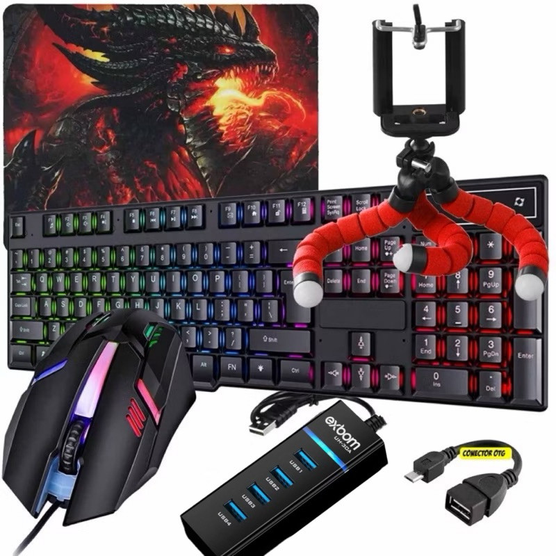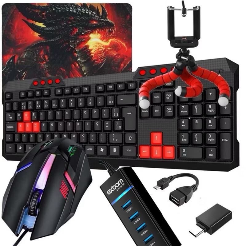 Kit 3.0 Mobilador Gamer Completo One Hand Uma Mao Otg Tipo C / V8 Para Celura / Ps4 / Notebook /Computador