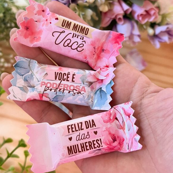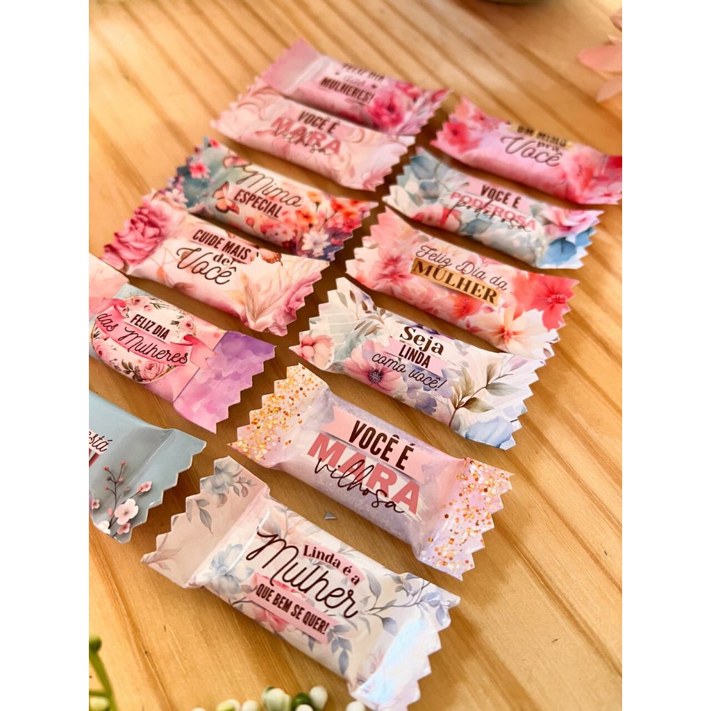 Kit 30/50/100 Lembrancinhas Balas Tema 'Dia da Mulher'