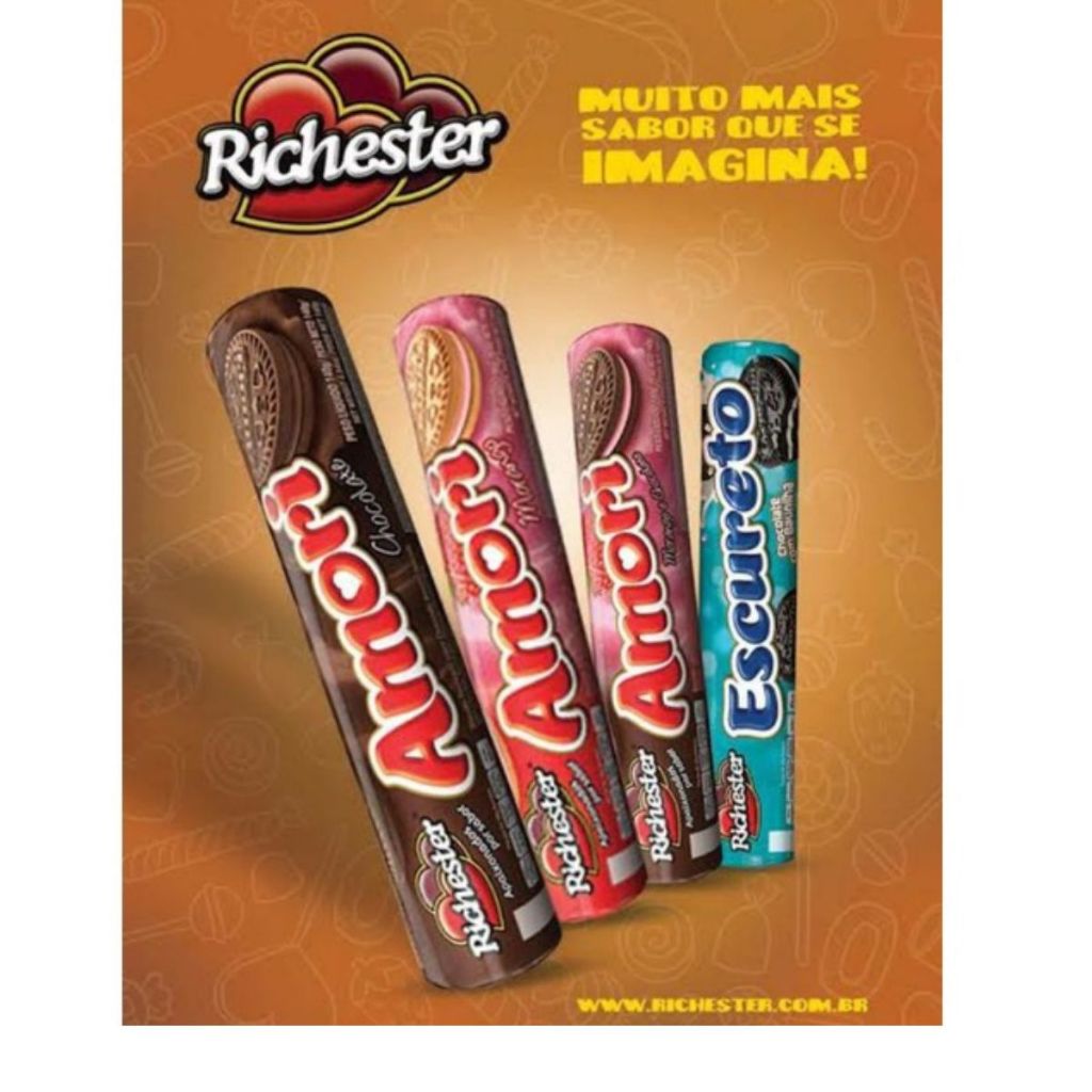 Kit 30 unidades Biscoito Recheado Richester Amori Escureto Chocolate e Morango 125g
