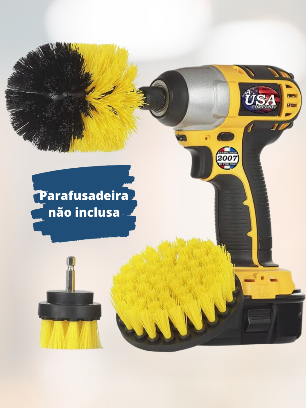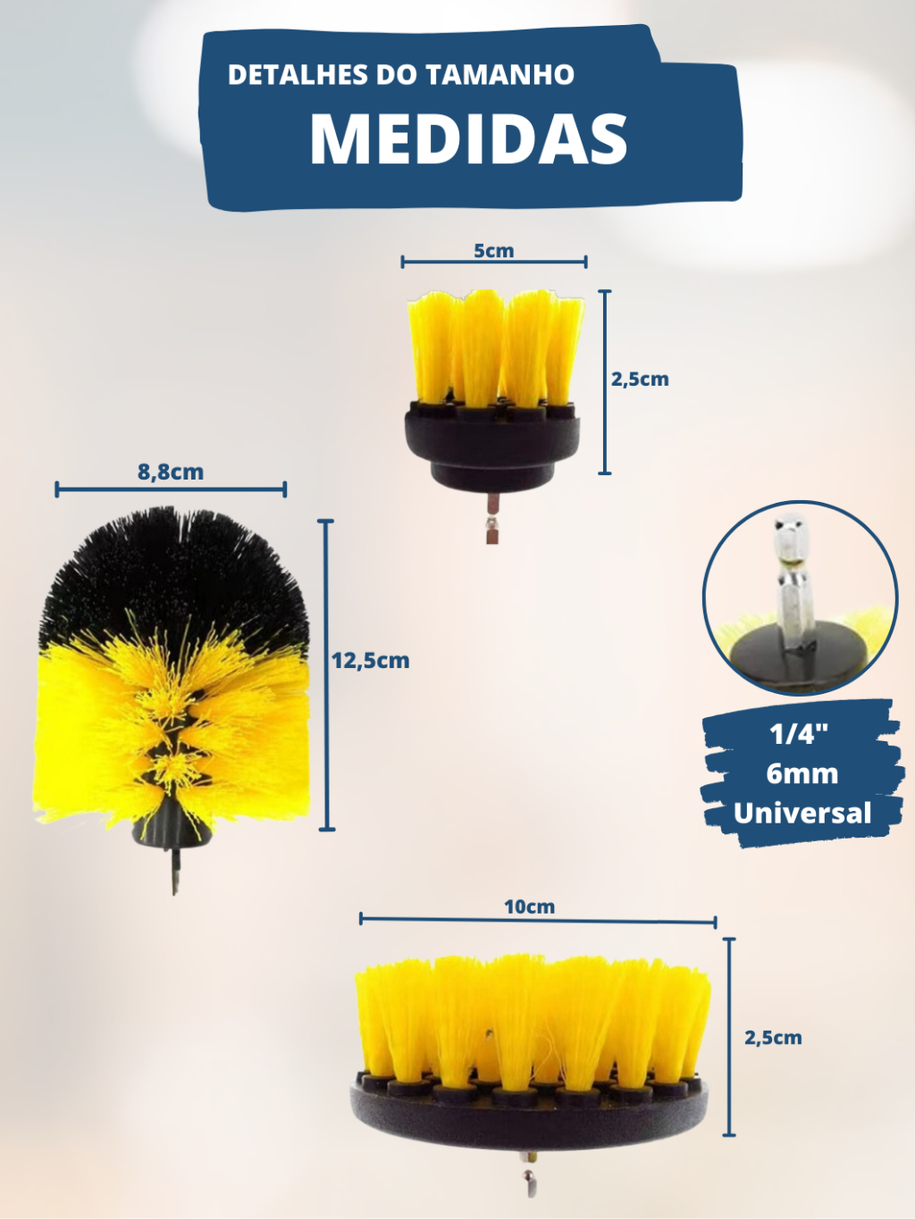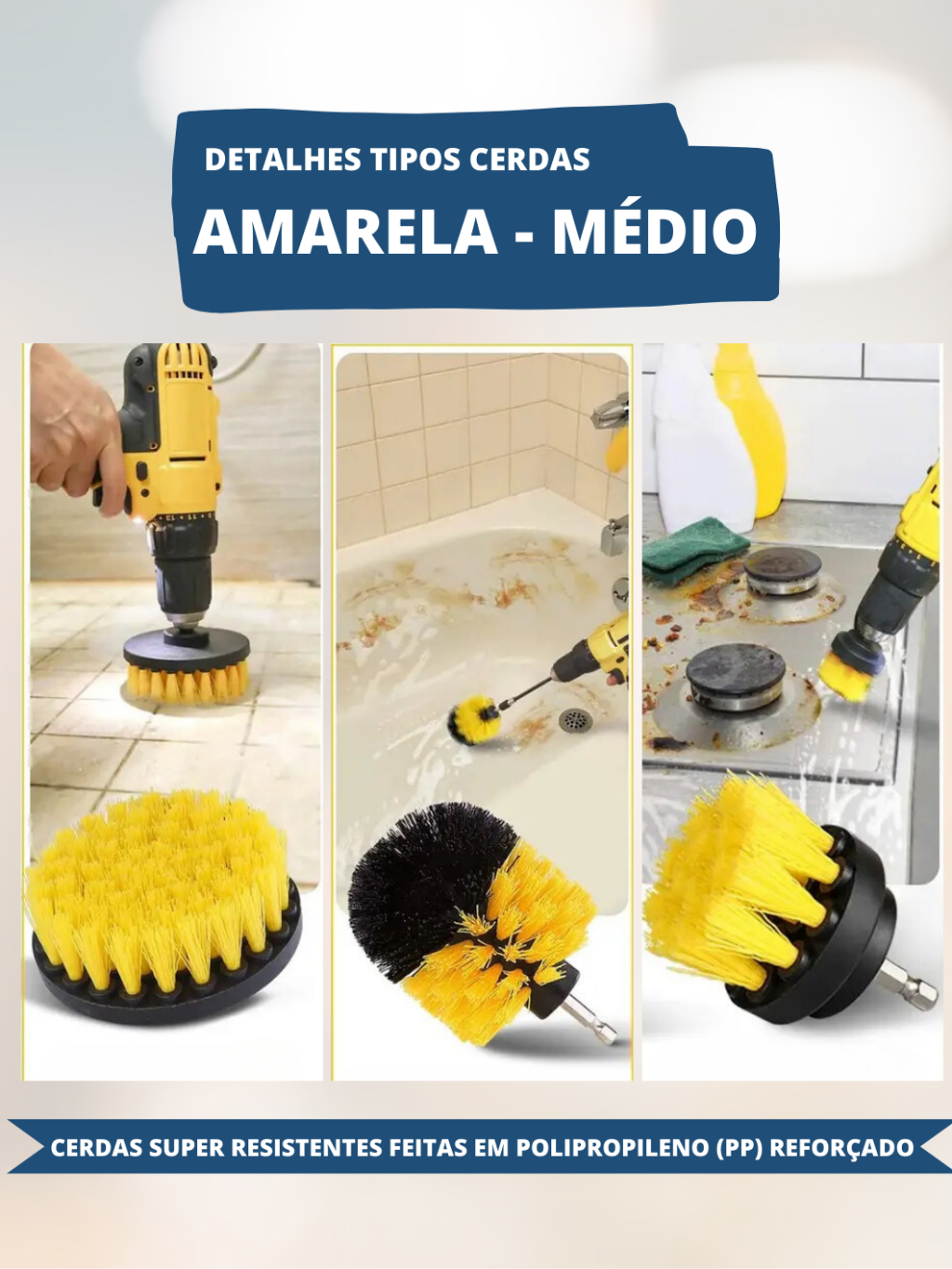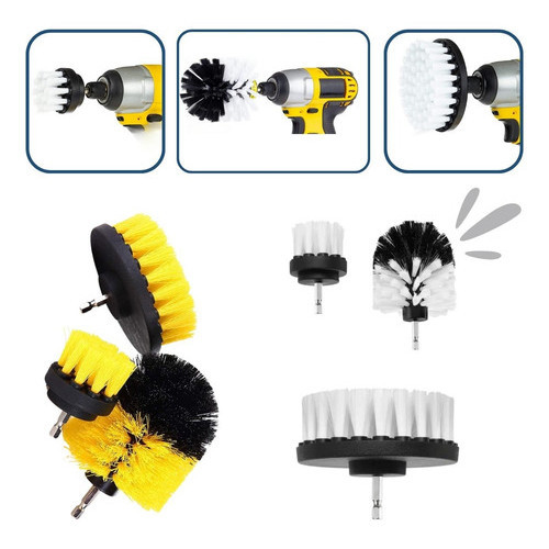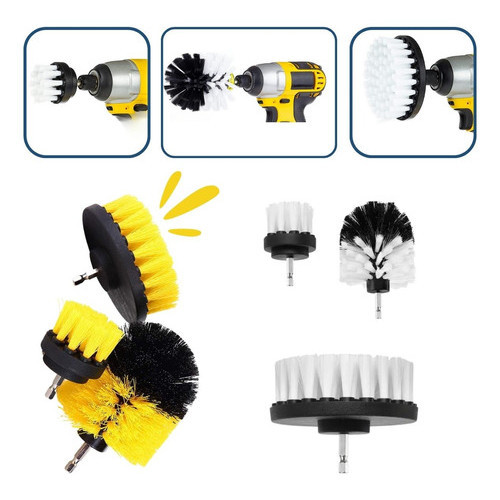Kit 3pcs Escova Rotativa Encaixe Parafusadeira Furadeira Limpeza Automotiva Pesada Lavar Box Sofás Tecidos Couros Estofados Tapetes Chão Banheiro Multiuso Cerdas Média e Soft (Macia)