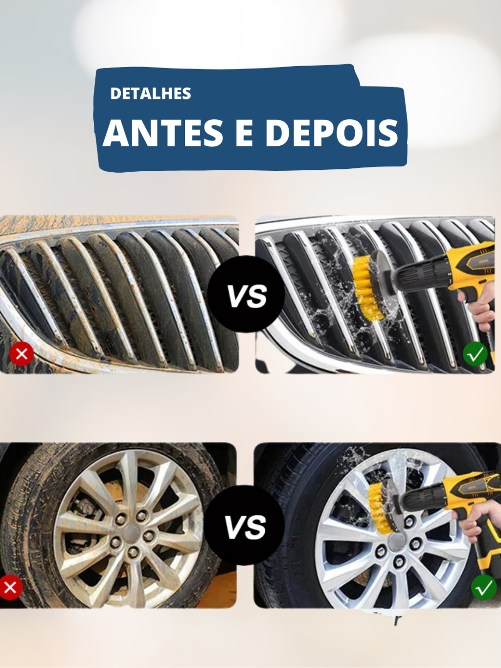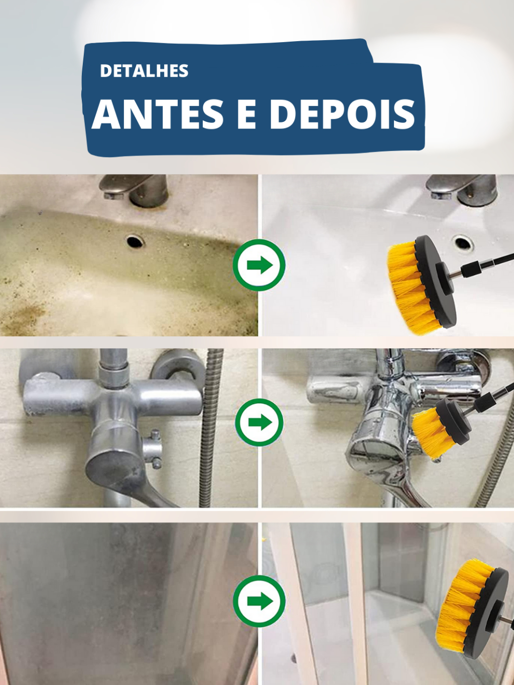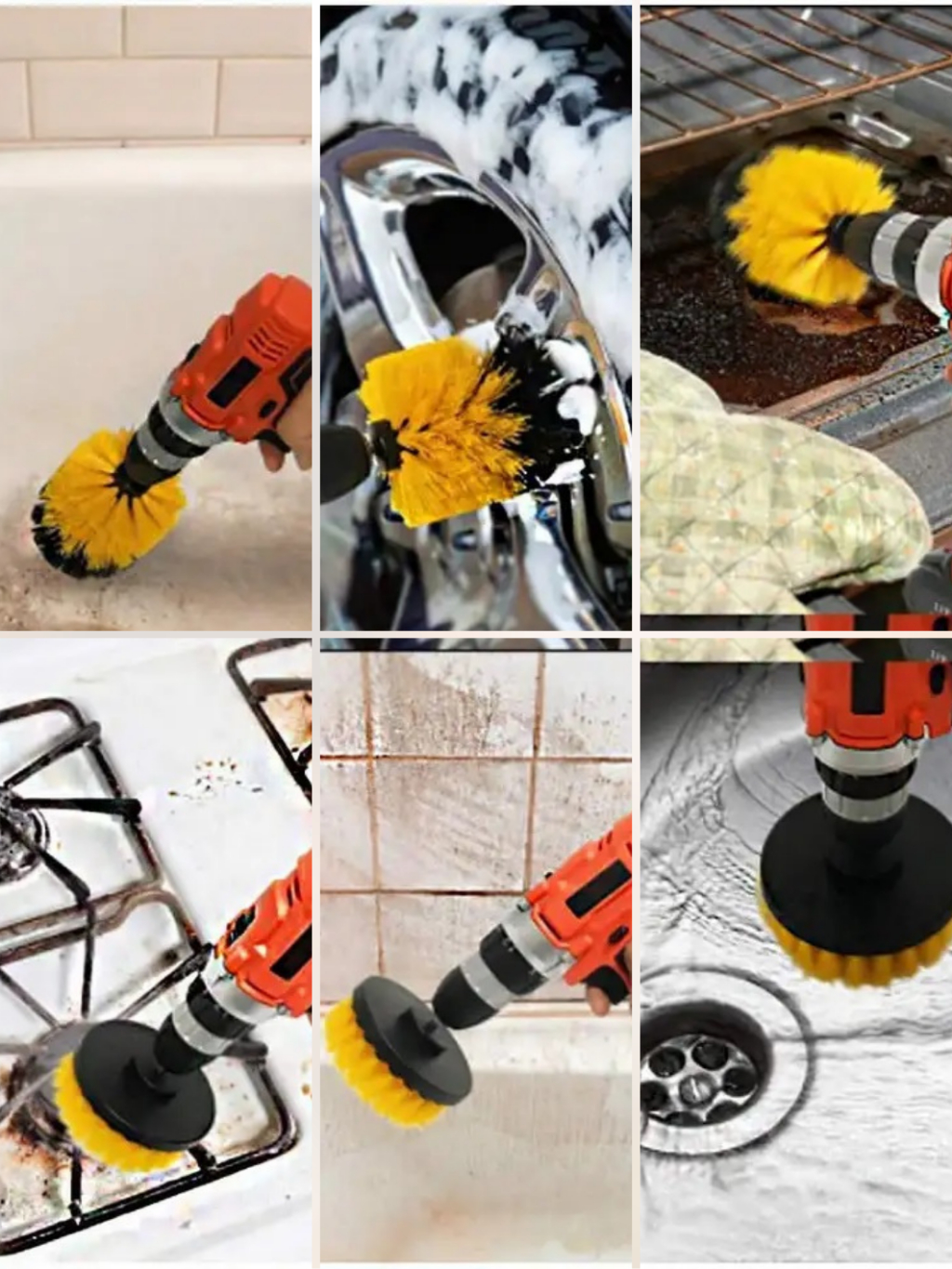 Kit 3pcs Escova Rotativa Encaixe Parafusadeira Furadeira Limpeza Automotiva Pesada Lavar Box Sofás Tecidos Couros Estofados Tapetes Chão Banheiro Multiuso Cerdas Média e Soft (Macia)