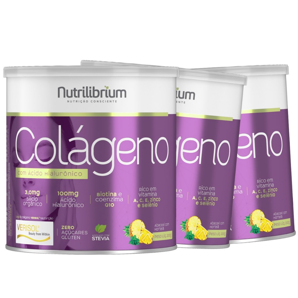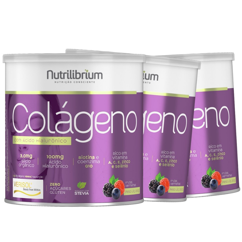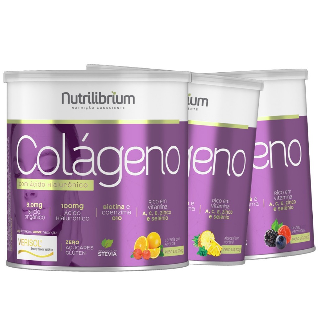 Kit 3x Colágeno Hidrolisado Verisol Ácido Hialurônico Biotina Coenzima Q10 200g Nutrilibrium