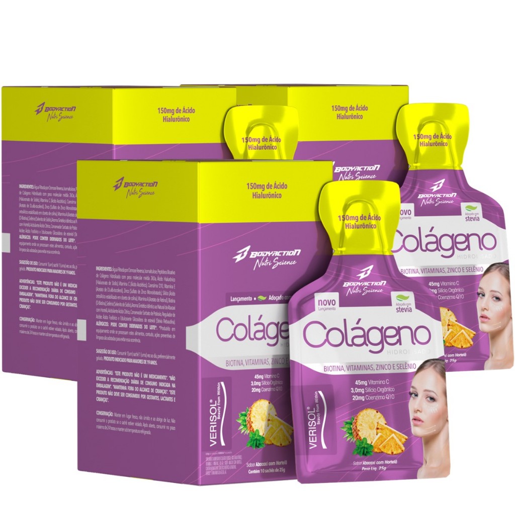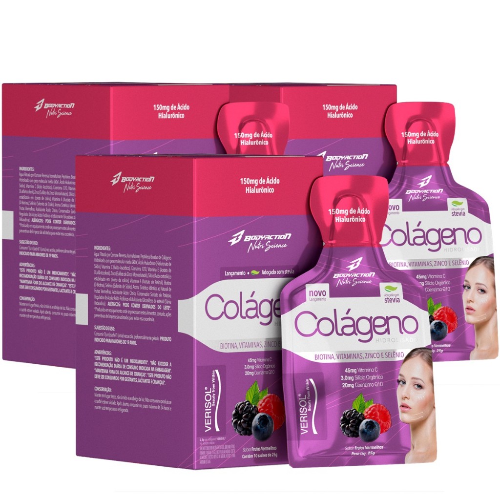 Kit 3x Colágeno Verisol Ácido Hialurônico Gel - Total 30 Sachês Bodyaction