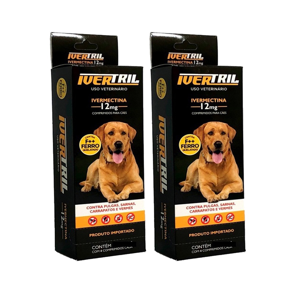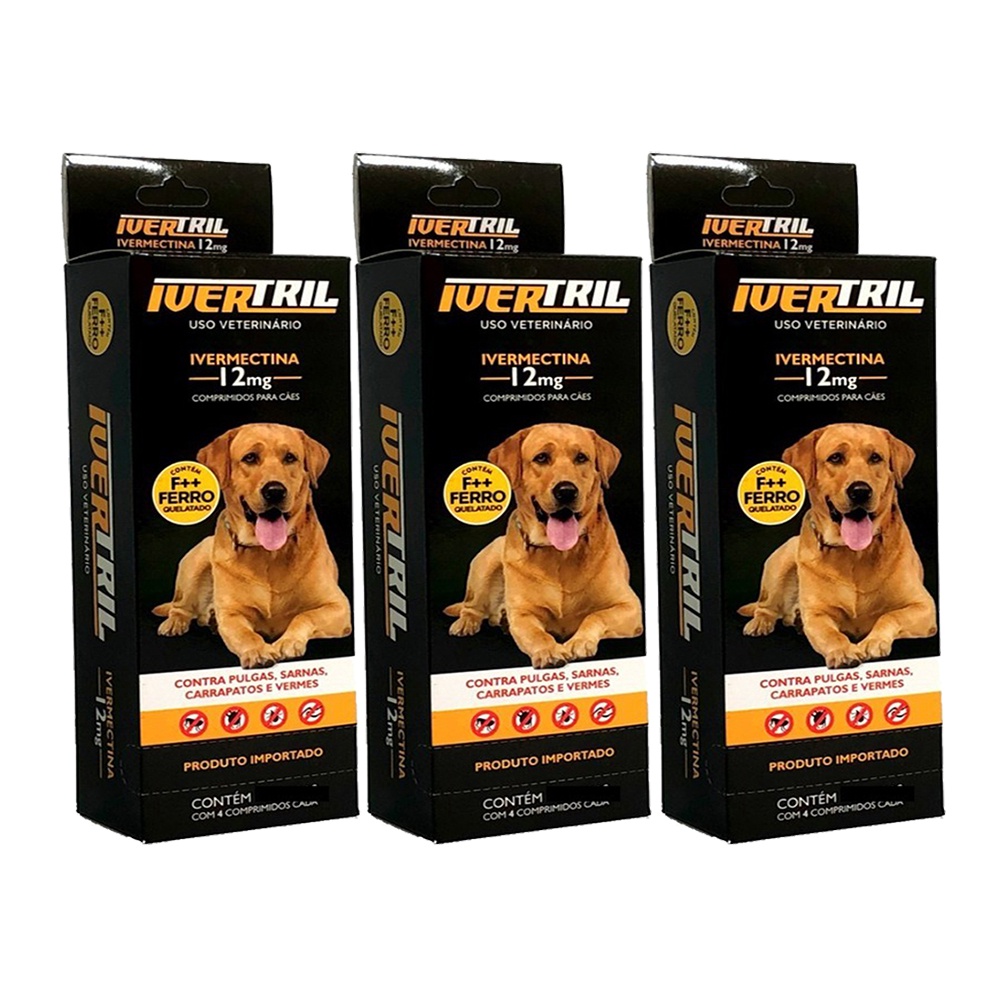 Kit 3x Ivertril 12 mg - Contra Pulgas, Carrapatos e Vermes