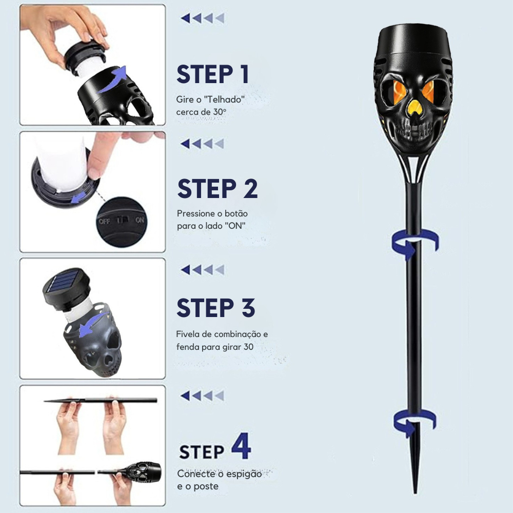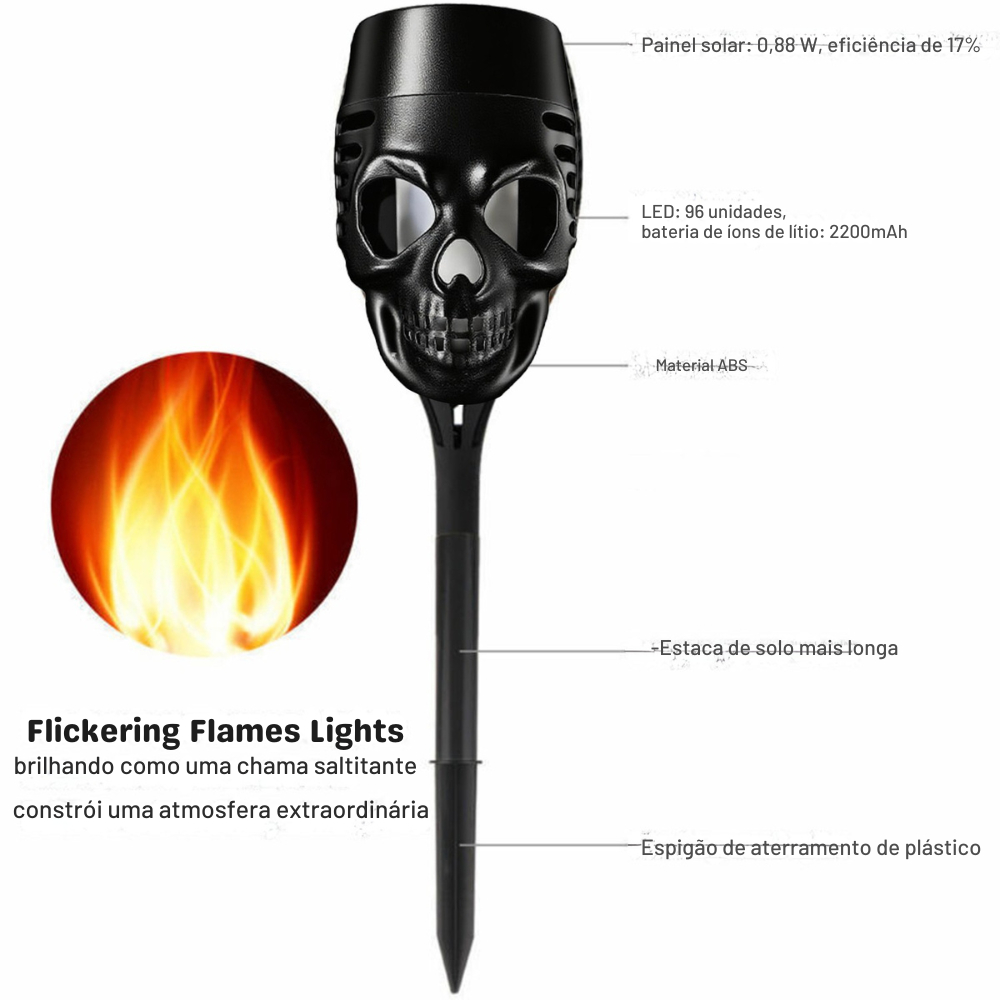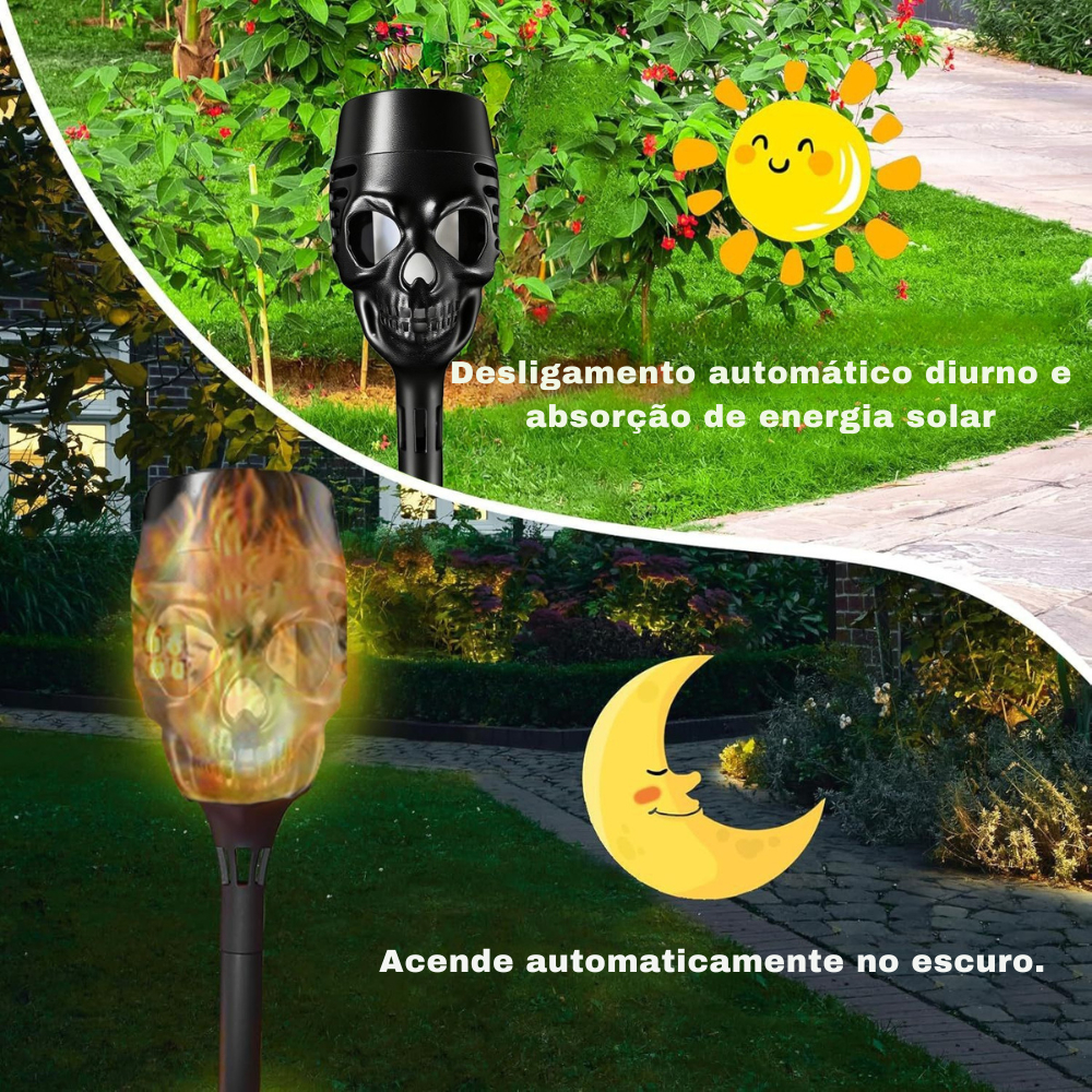 Kit 4-12 Balizador Solar Caveira Halloween Granfei 39cm Decoração Jardim Quintal unifytech