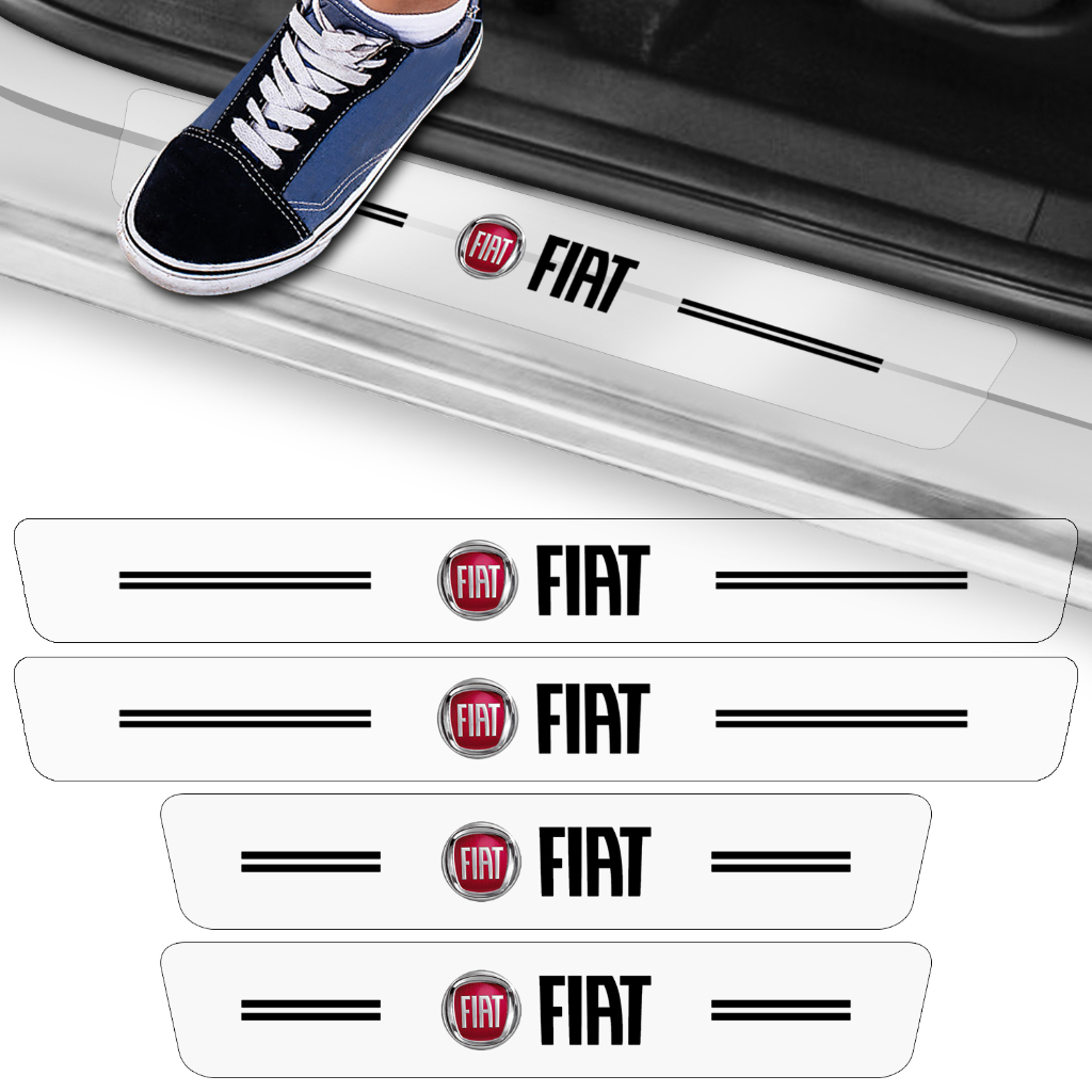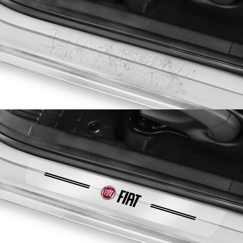 Kit 4 Adesivo Soleira Porta Compatível Fiat Proteção Fibra Carbono Vinil Transparente Anti Arranhões