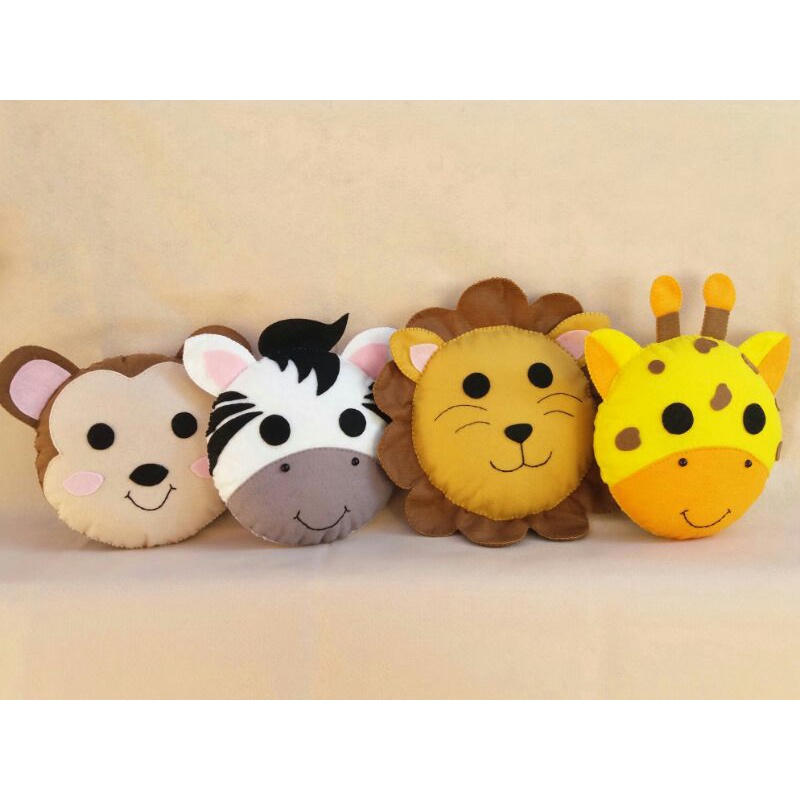 Kit 4 Almofada Safari em Feltro Almofadas Animais Almofada Zebra Almofada Leão Almofada Girafa Almofada Macaco Almofada Animais Safari Feltro
