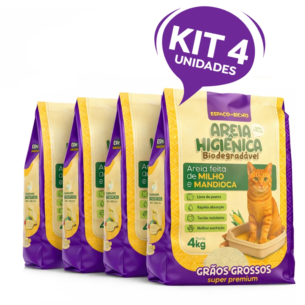 Kit 4 Areia Higiênica Biodegradável Grãos Finos Milho e Mandioca (100% Natural) - Espaço De Bicho