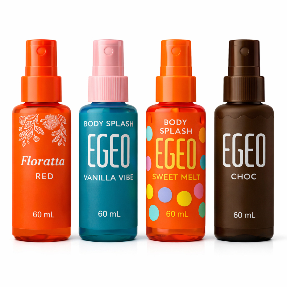 Kit 4 Body Splash Feminino Importado Egeo & Floratta Vanilla Vibe Melancia Floratta Red Fragrâncias