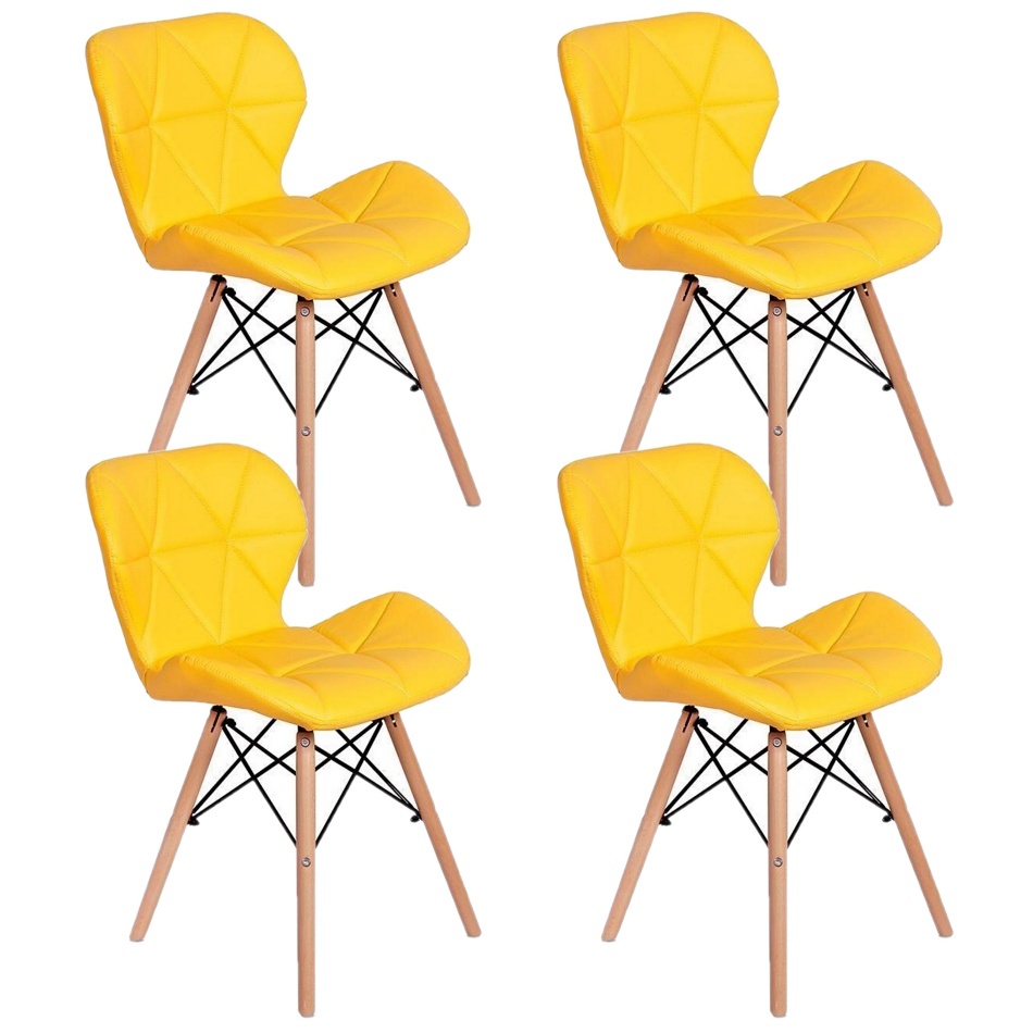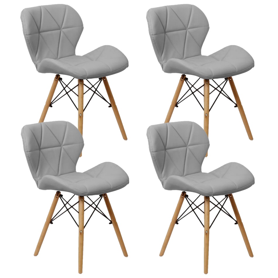 Kit 4 Cadeiras Charles Eames Eiffel Slim Wood Estofada Preta Branca Bege