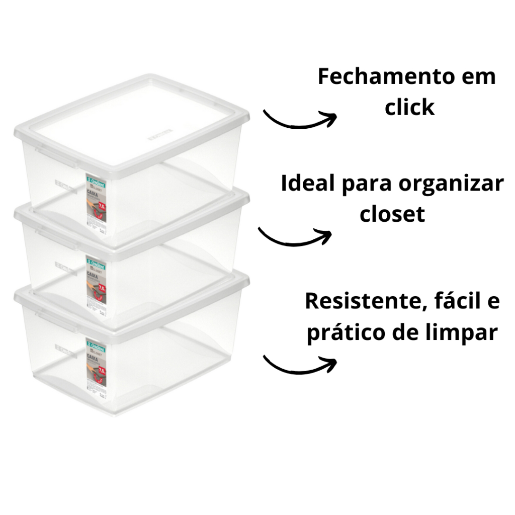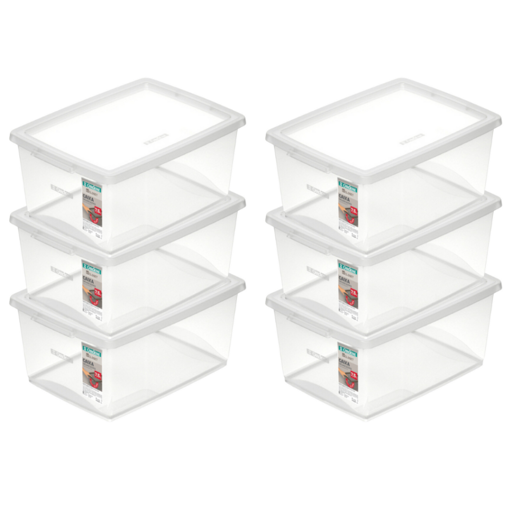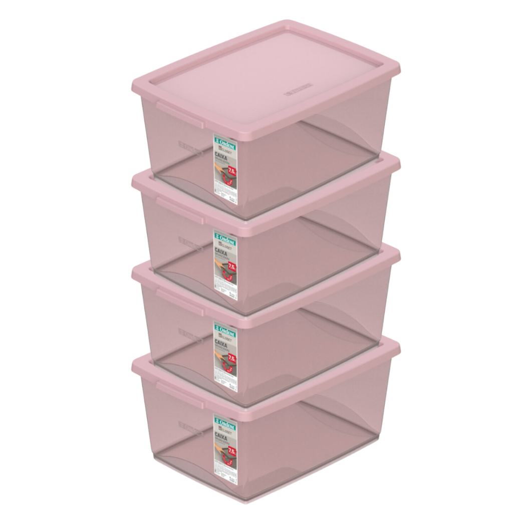 Kit 4 Caixa Organizadora 7,5l Ordene Disign Moderno Cristal Empilhavel Com Tampa